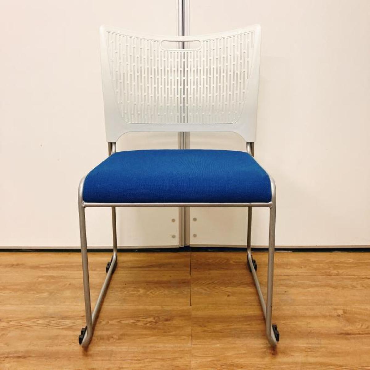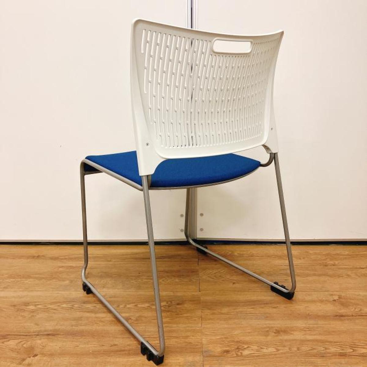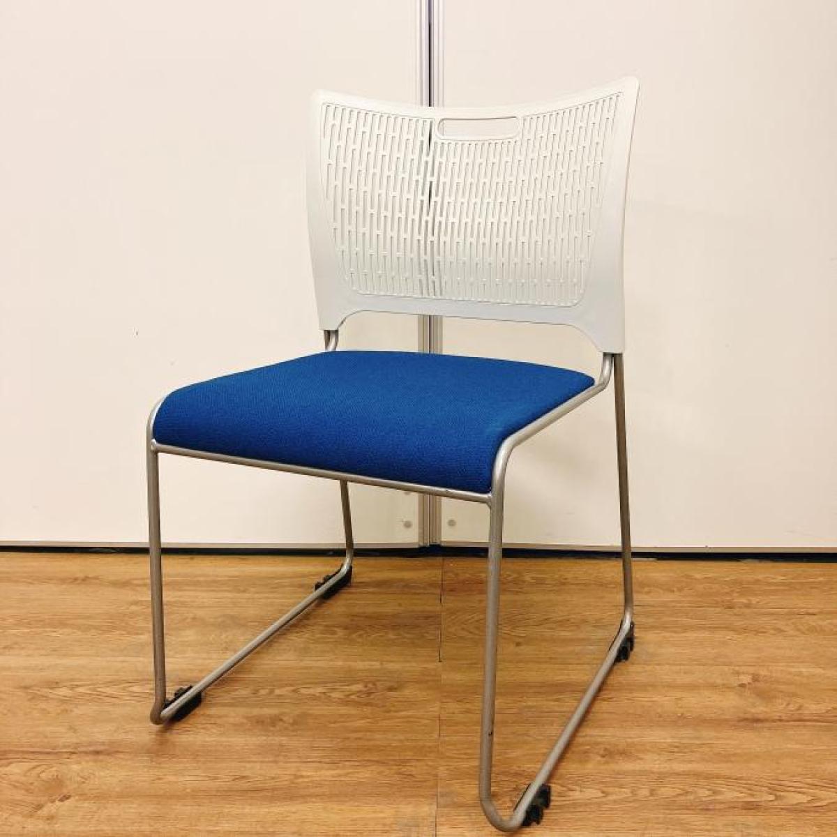 【在庫入替セール品!】コンパクトで人気なミーティングチェア!会議用スタッキングチェアの定番!重ねて収納可能な便利な商品! ■オカムラ/レーテチェア/ブルー 【キャスター無で安定感〇】- 立川・八王子店