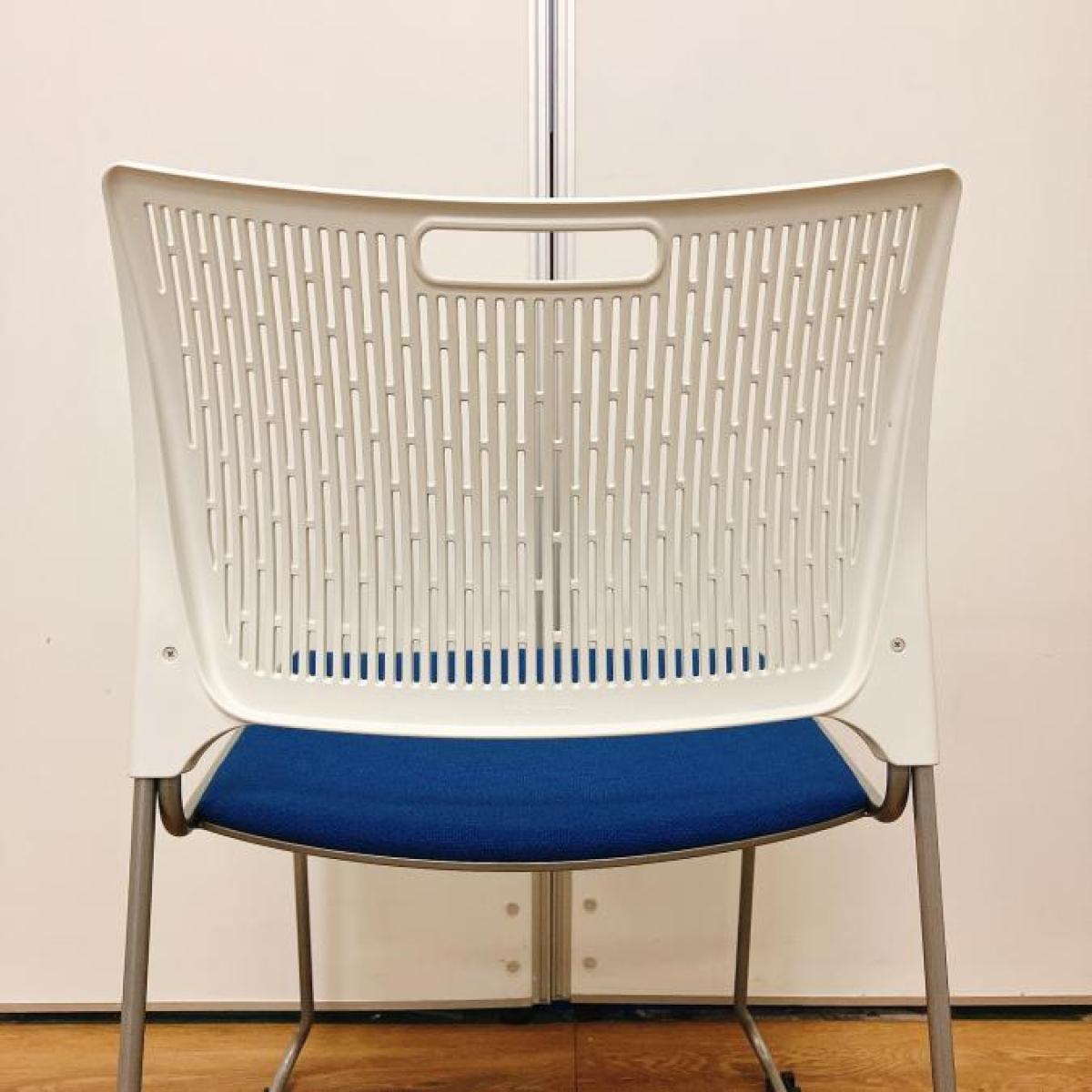 【重ねて収納可能!さわやかなカラーとシンプルデザイン!】■オカムラ製 レーテ スタッキングチェア ミーティングチェア ■キャスター付き ■座面ブルー×背面ホワイト【2412】弊社使用欄【A00990049】