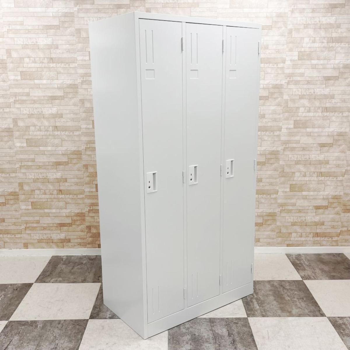 【ホワイトの3人用新古品ロッカー!もちろん全鍵2本付き!!!】ロッカー スチール ホワイト 増員 鍵付き 【ロットでもご案内可能です!】- 大阪・堺店