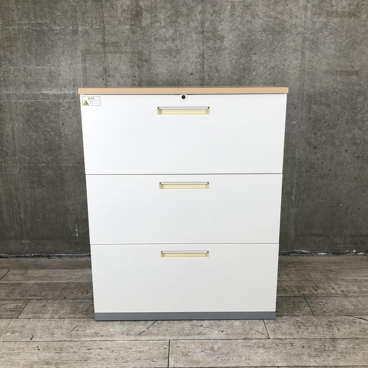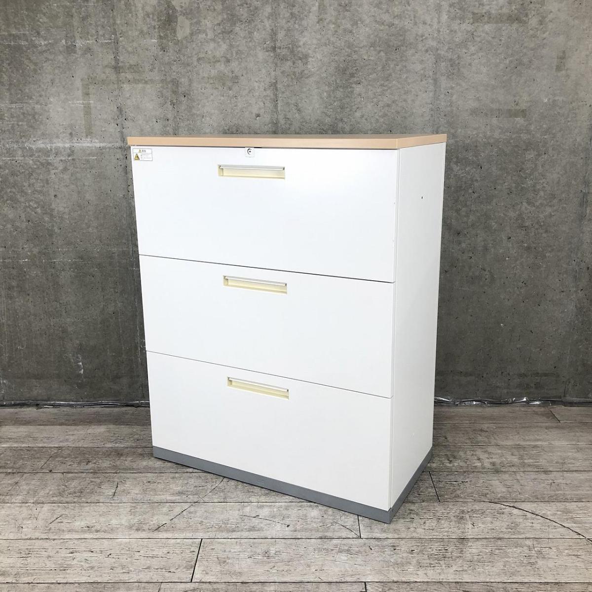 【定価約14万円】【オフィスの必需品!!大容量のローキャビネット!】■イナバ(Inaba)製 3段ラテラル ローキャビネット W900×D450㎜ ■シリンダー錠 ■ホワイト ■ナチュラル木目調天板付き ※取手日焼け有- 千葉店