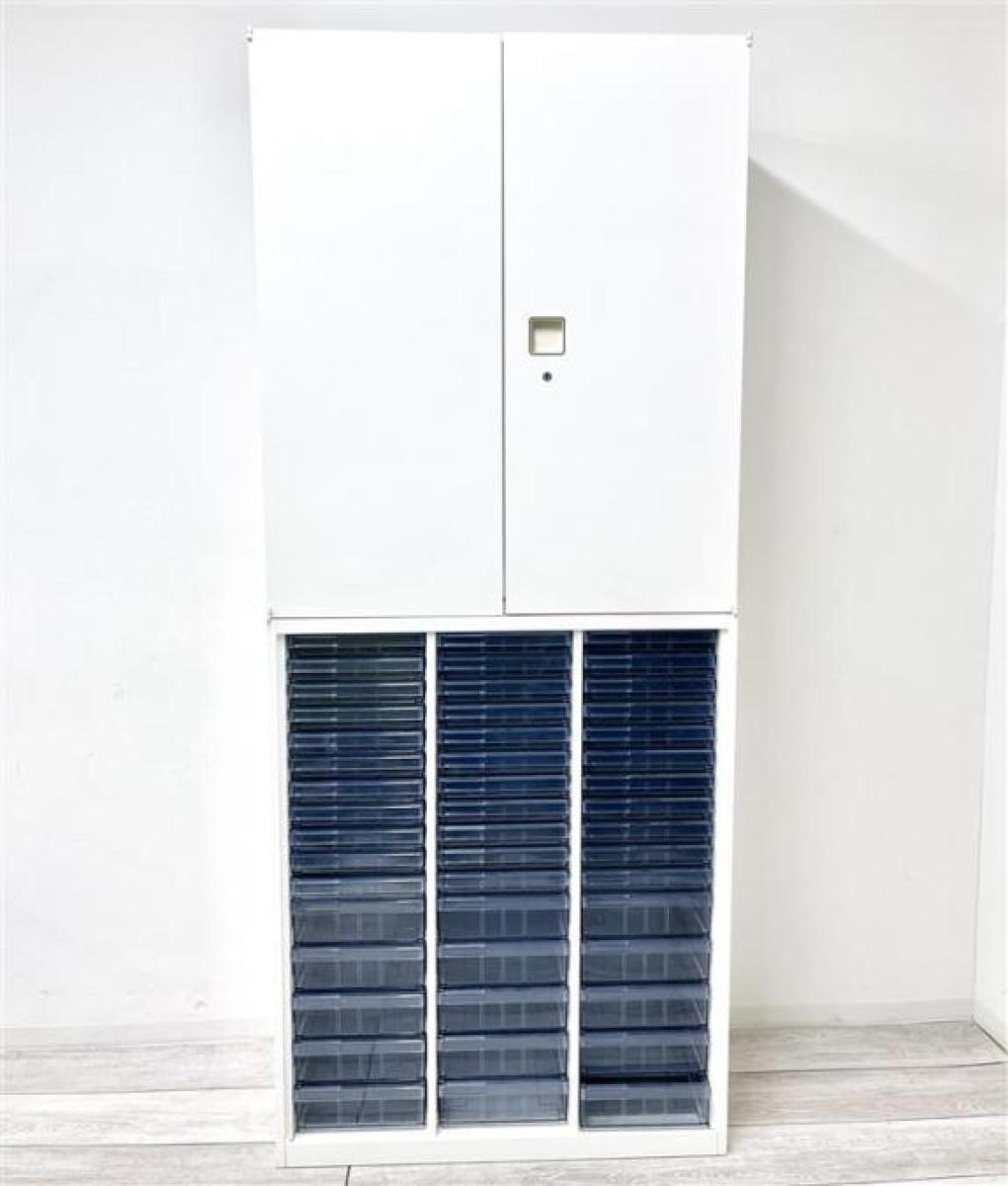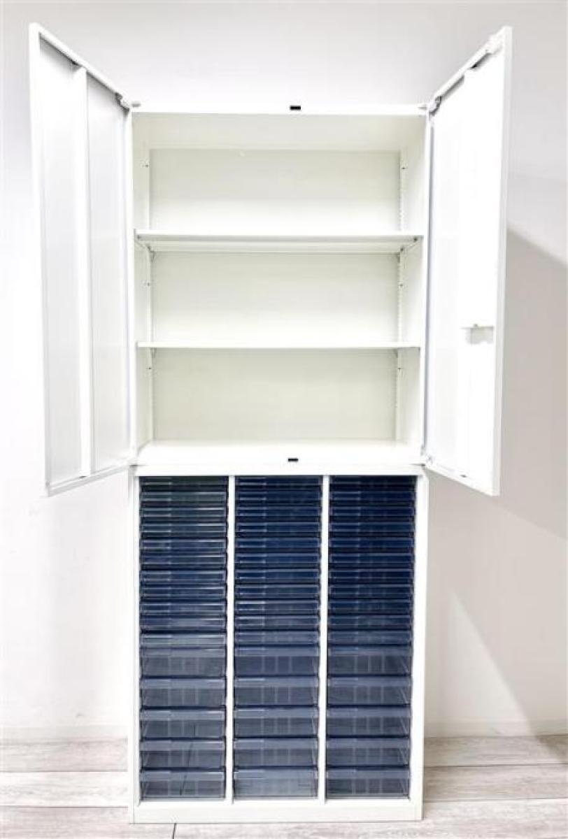 両開き書庫とクリスタルトレイキャビネットの上下書庫セットの入荷です】 ■オカムラ/レクトライン/ホワイト 両開き+クリスタルトレー 浅型11段深型5段- 立川・八王子店