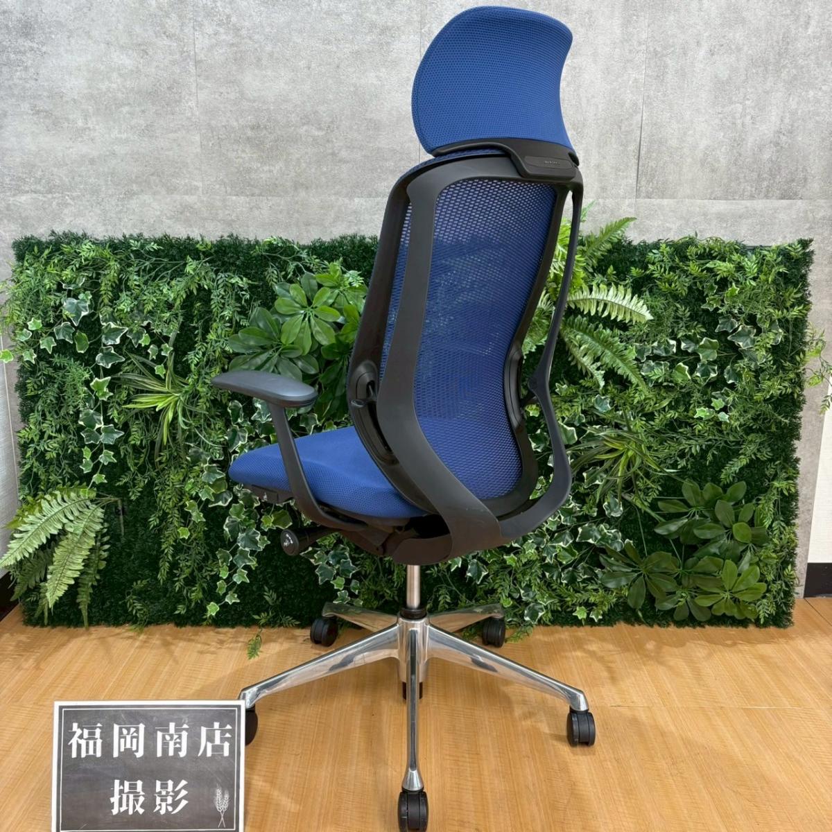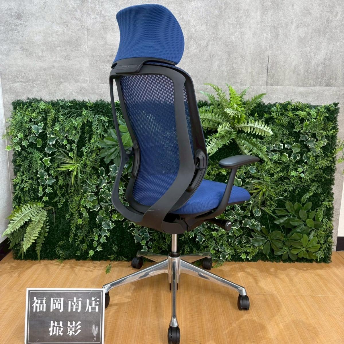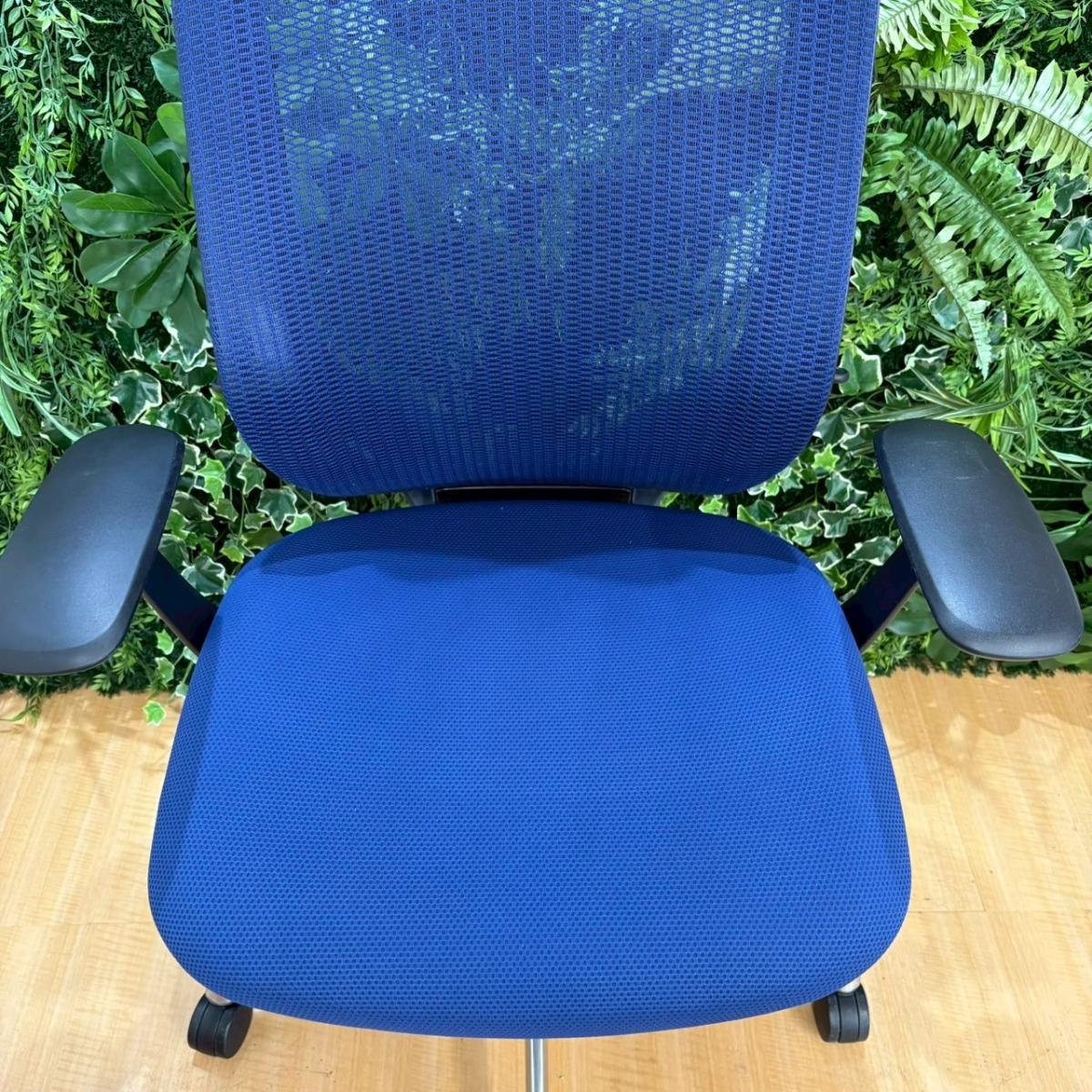 【新品ヘッドレスト交換済み】オカムラ/シルフィー/ブルー/可動肘