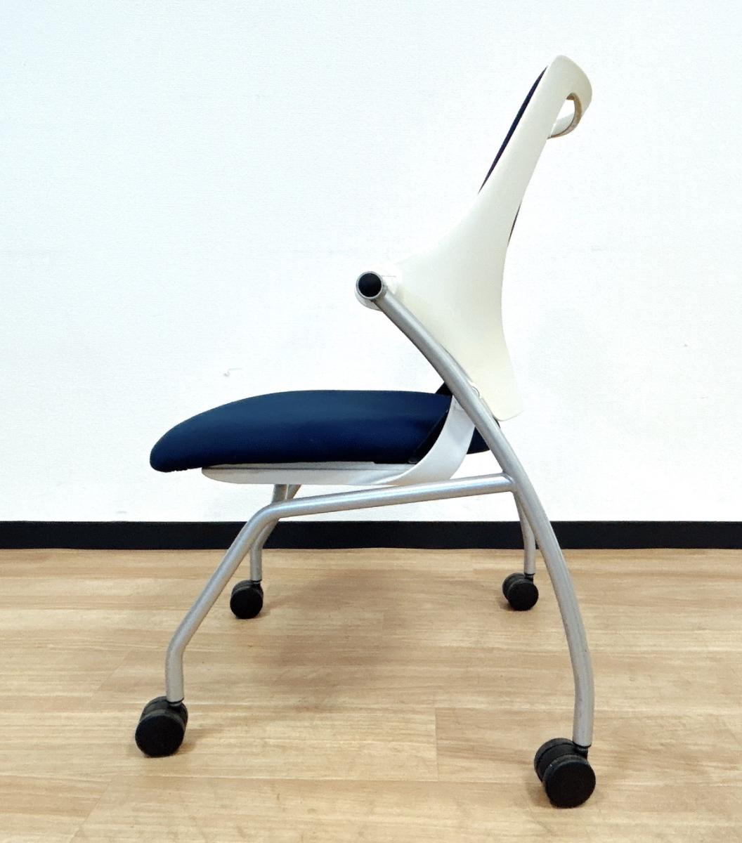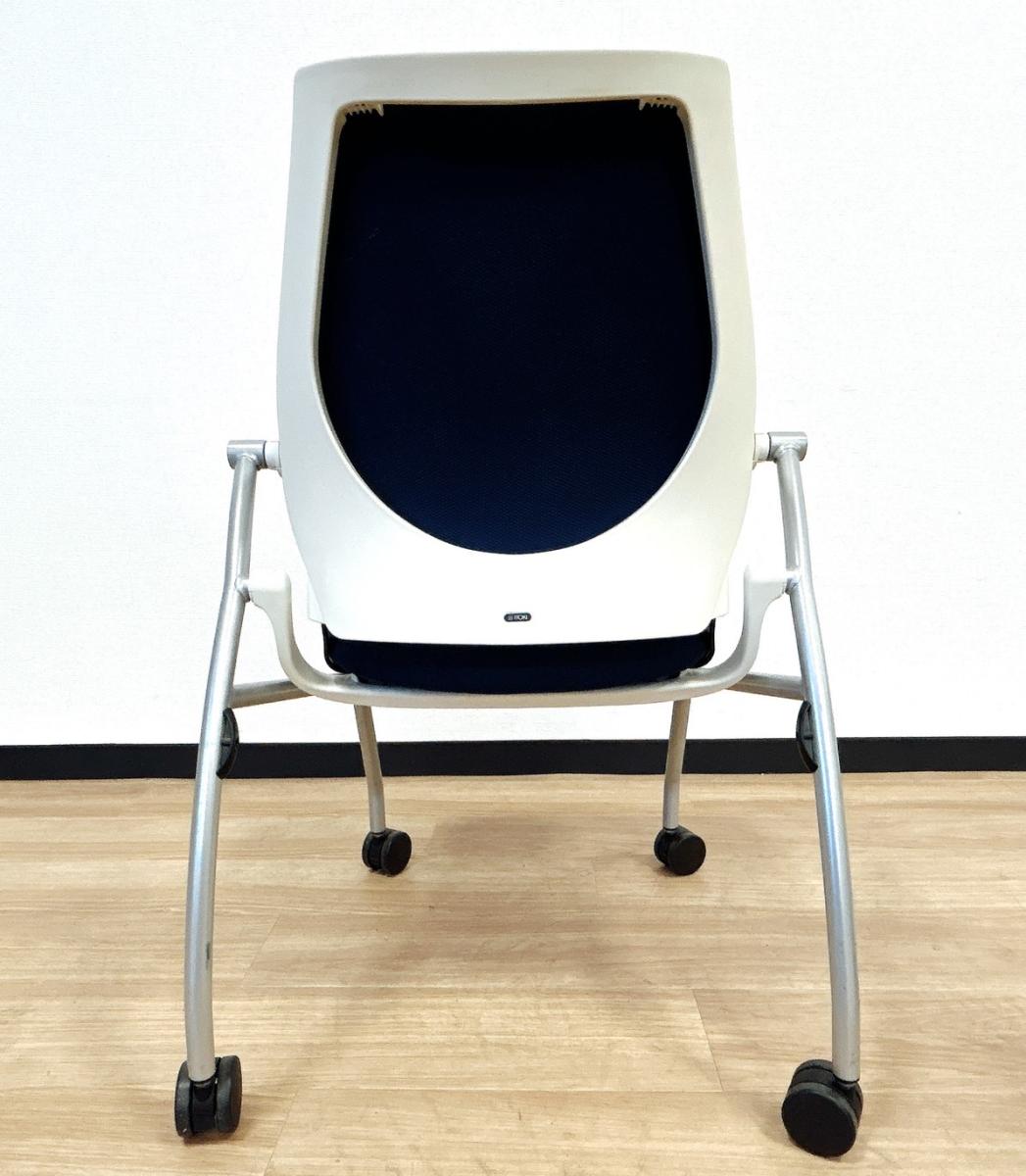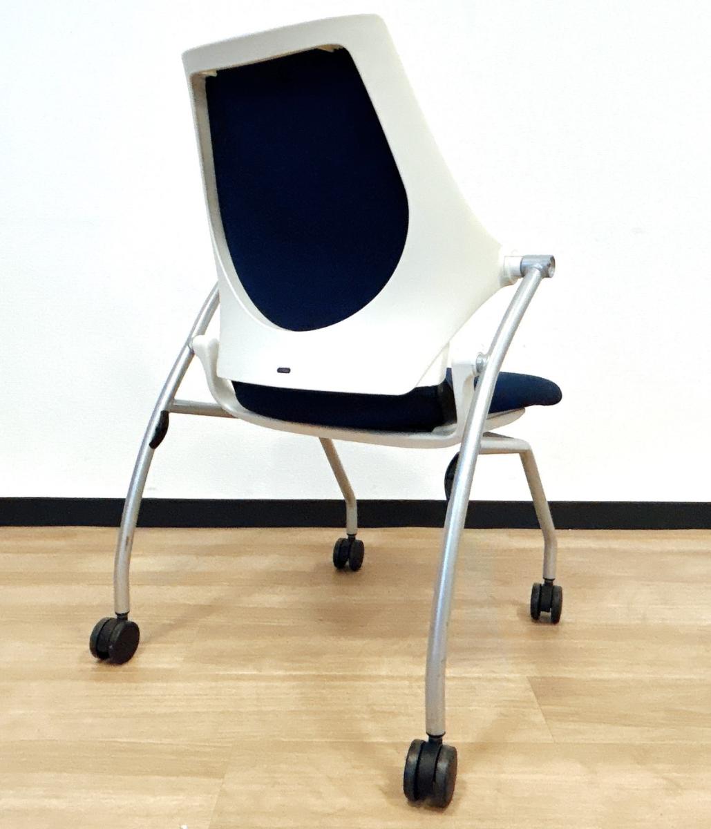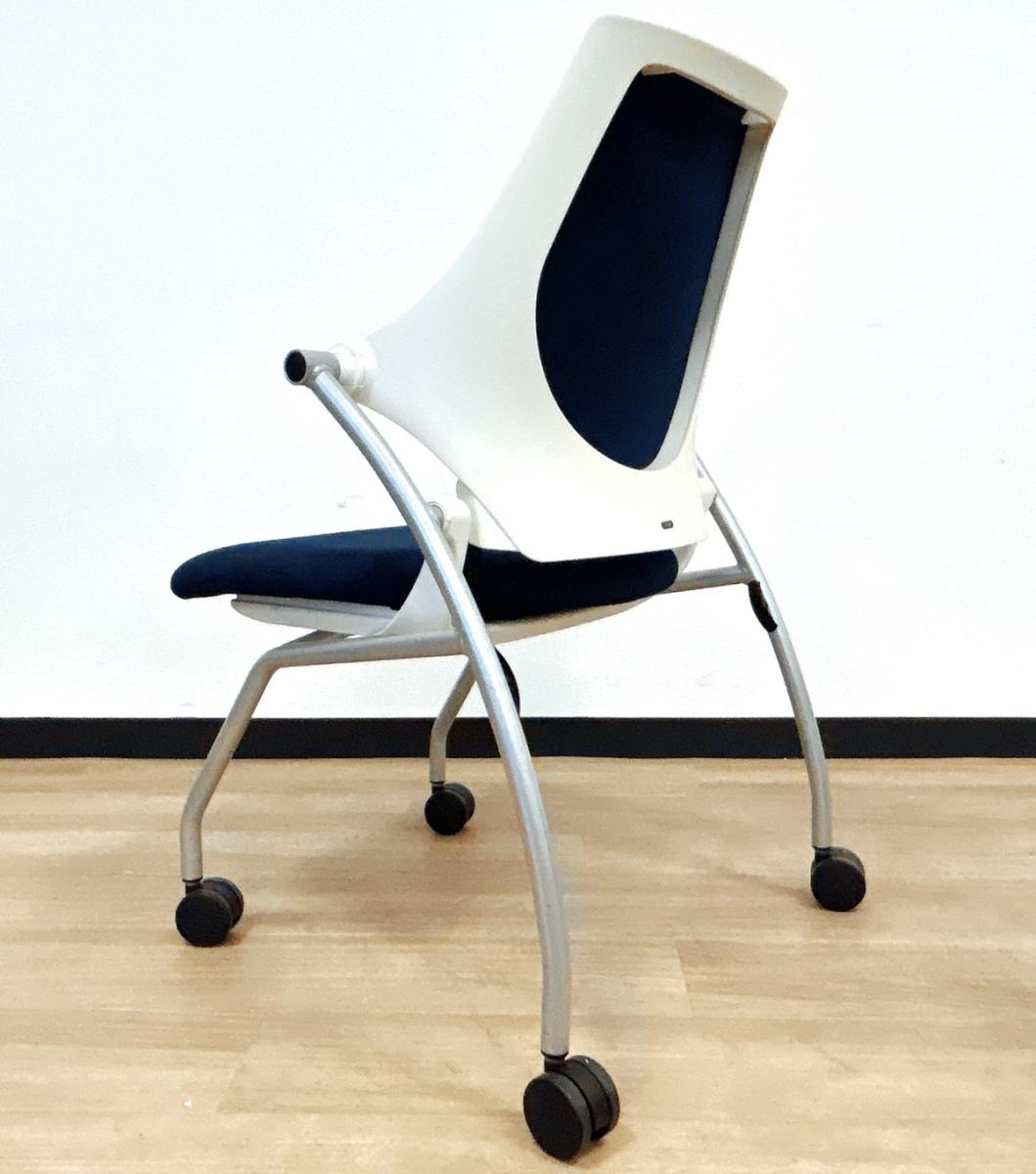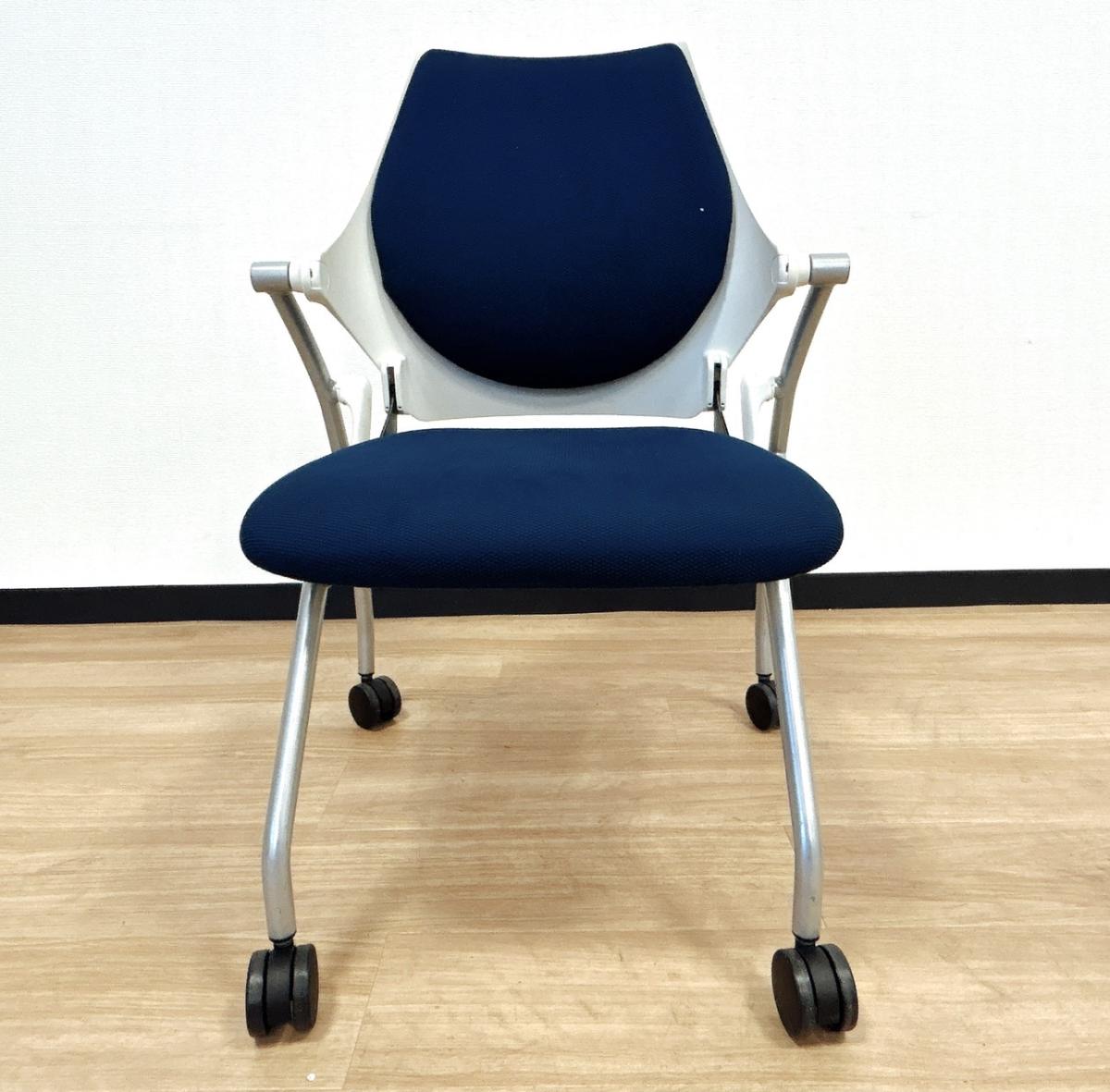 【疲れにくく快適な座り心地を追求!】■イトーキ(ITOKI)製 イプサシリーズ ネスティングチェア ミーティングチェア キャスター付 ■ネイビーブルー×ホワイトシェル 【平行スタックで省スペース!】