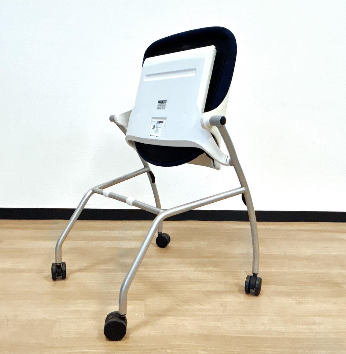 ■イトーキ(ITOKI)製 イプサ(ipsa)シリーズ 肘無ネスティングチェア キャスター付 ■ネイビーブルー× ホワイトシェル【シックな色合いではかどるミーティング!平行スタックで省スペース!】※埼玉本店撮影 【2508】弊社使用欄【A01030852】※- 埼玉本店
