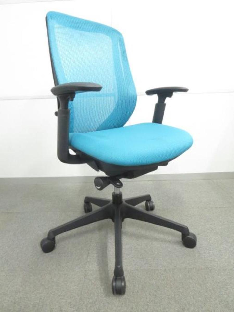《現物写真だから安心!》オカムラ製の人気オフィスチェア【シルフィーメッシュ/可動肘/ヘッドレスト付き/ブルーグリーン】が先着1名様ご案内可能です!