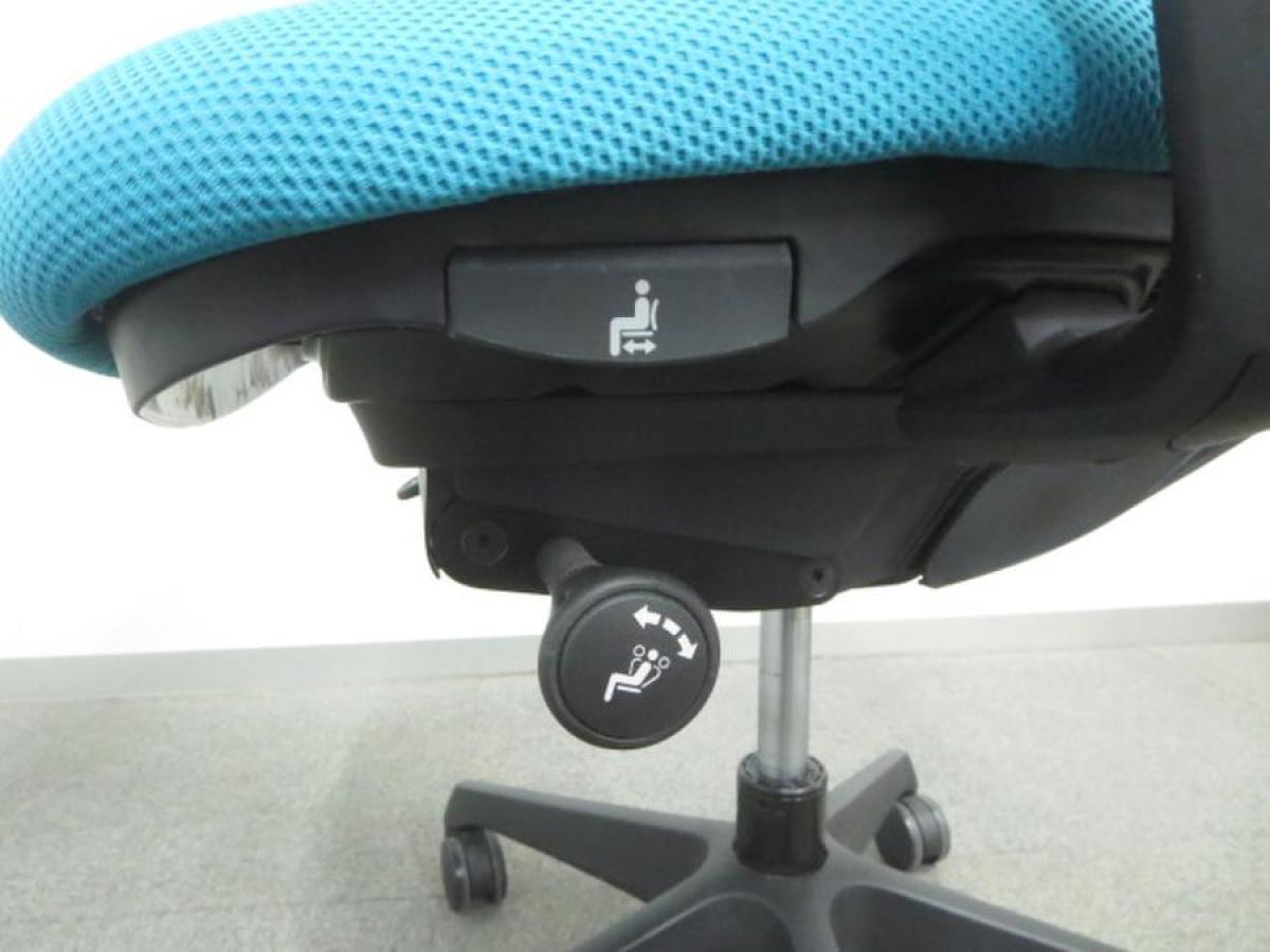 - 座面右下のダイヤル操作で、リクライニングの強弱調整が行えます。これまでのダイヤル式よりも、少ない回転数で、最弱?最強の調整が可能です。