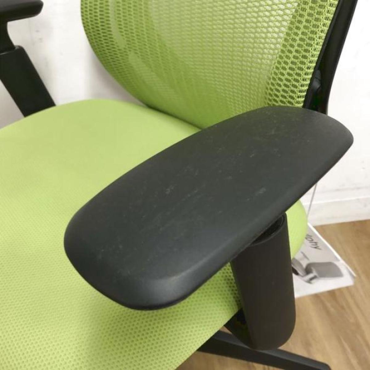 【人気のヘッドレスト付!集中作業にもオススメのワークヴェール付!】■オカムラ シルフィーチェア 可動肘付 ライムグリーン エクストラハイバック ■背のカーブを変えられる!新感覚のオフィスシーティング!【Okamrua Sylphy】★