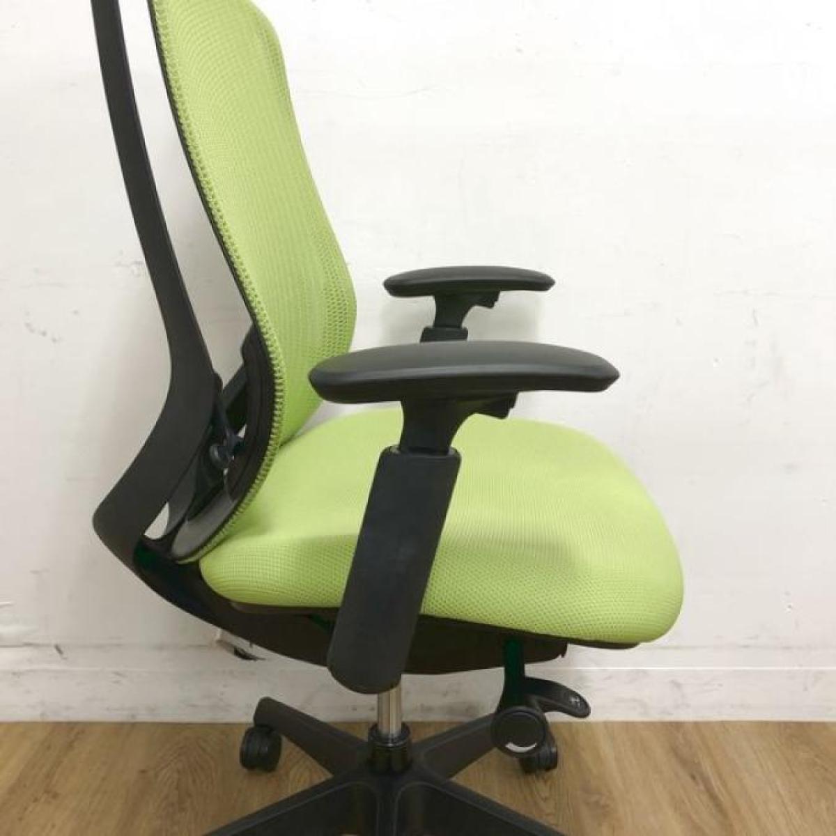 【人気のヘッドレスト付!集中作業にもオススメのワークヴェール付!】■オカムラ シルフィーチェア 可動肘付 ライムグリーン エクストラハイバック ■背のカーブを変えられる!新感覚のオフィスシーティング!【Okamrua Sylphy】★