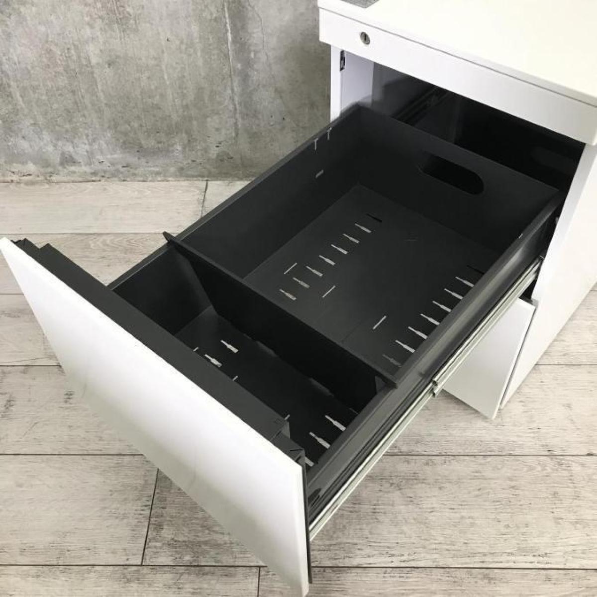 【フリアドデスクや平机の収納力アップに!ファイルや書類の収納に最適な3段ワゴン!】■オカムラ(okamura)製 プロユニット(Pro Unit)シリーズ 3段ワゴン フリアド用ワゴン H650㎜ ■シリンダー錠 ■ホワイト