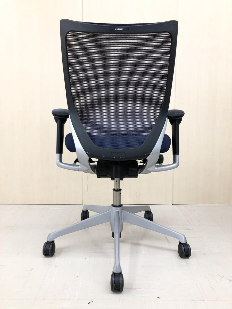 【座面が大人気!国産メッシュチェアの代表格!】■オカムラ(okamura)製 バロン(Baron)チェア ローバック 肘付き ■背面メッシュ ■固定肘 ■色:ダークブルー ■ハンガー付き