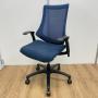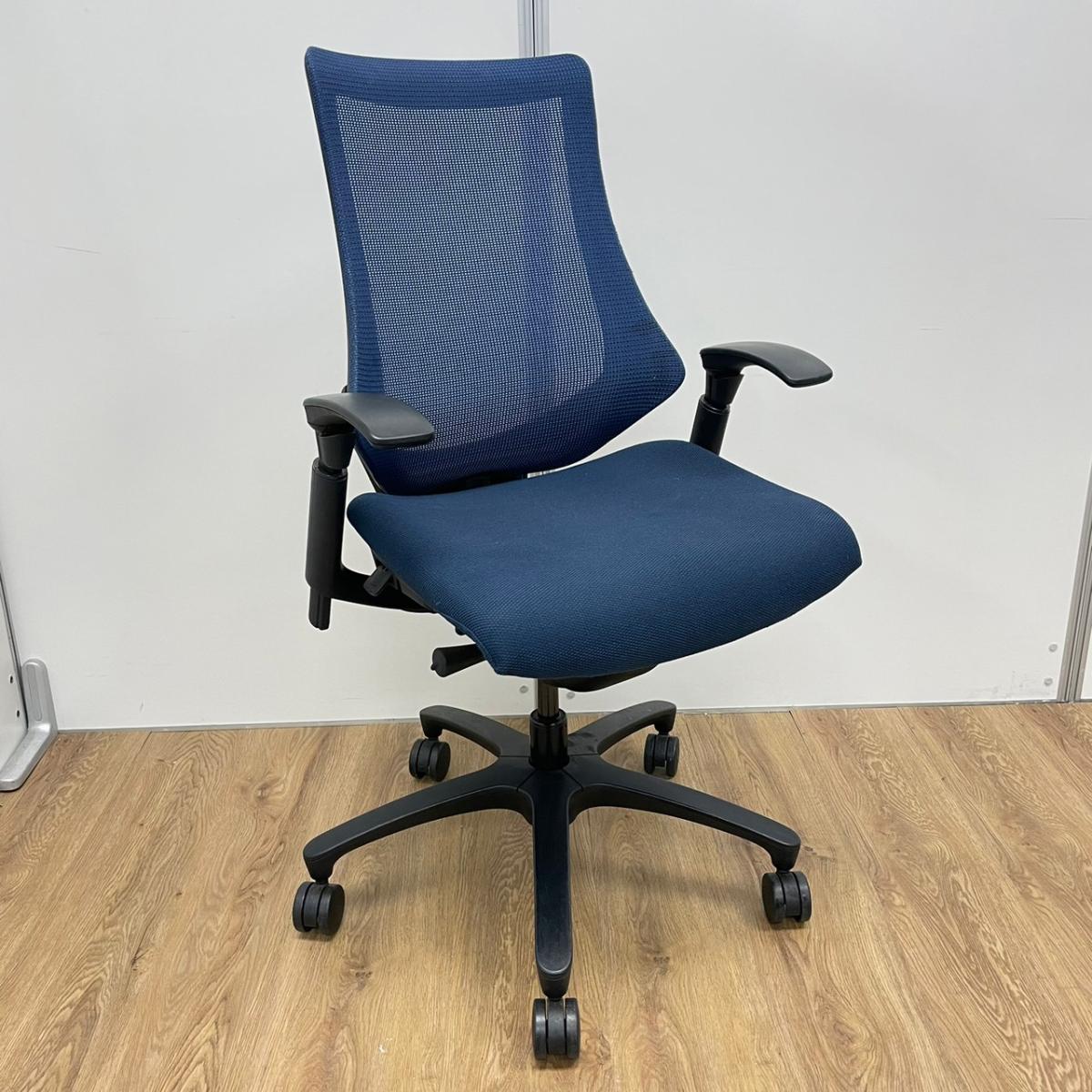 【最先端のデザインに快適な座り心地!】■イトーキ製 エフチェア 可動肘付 ネイビーブルー ■三次元フォルムが腰にフィット!【在庫入替セール品(本在庫限定価格)】