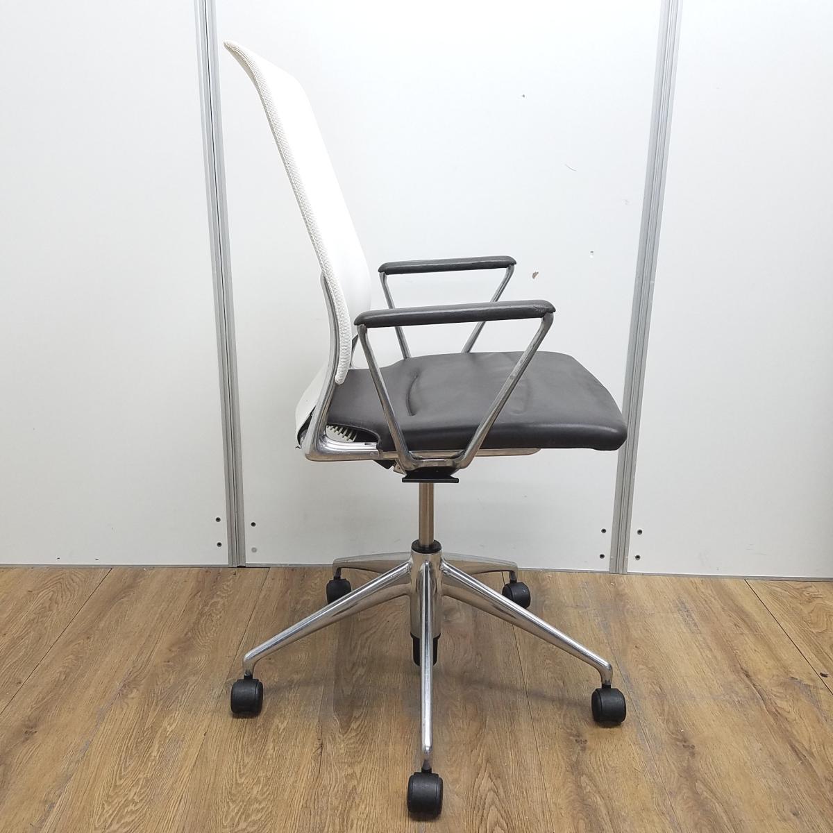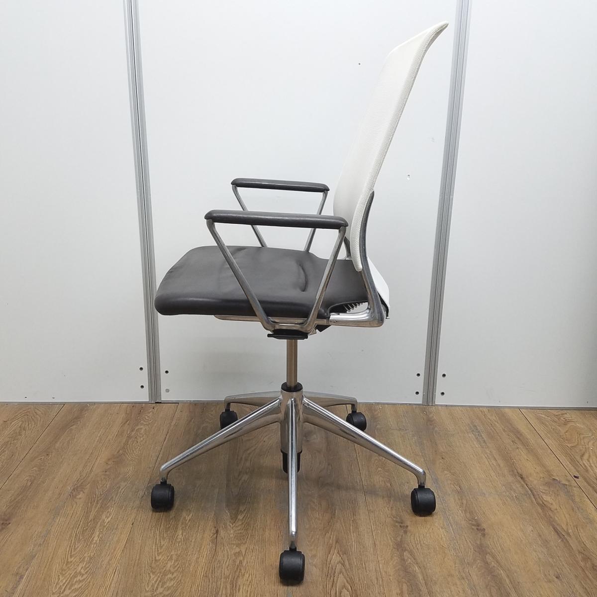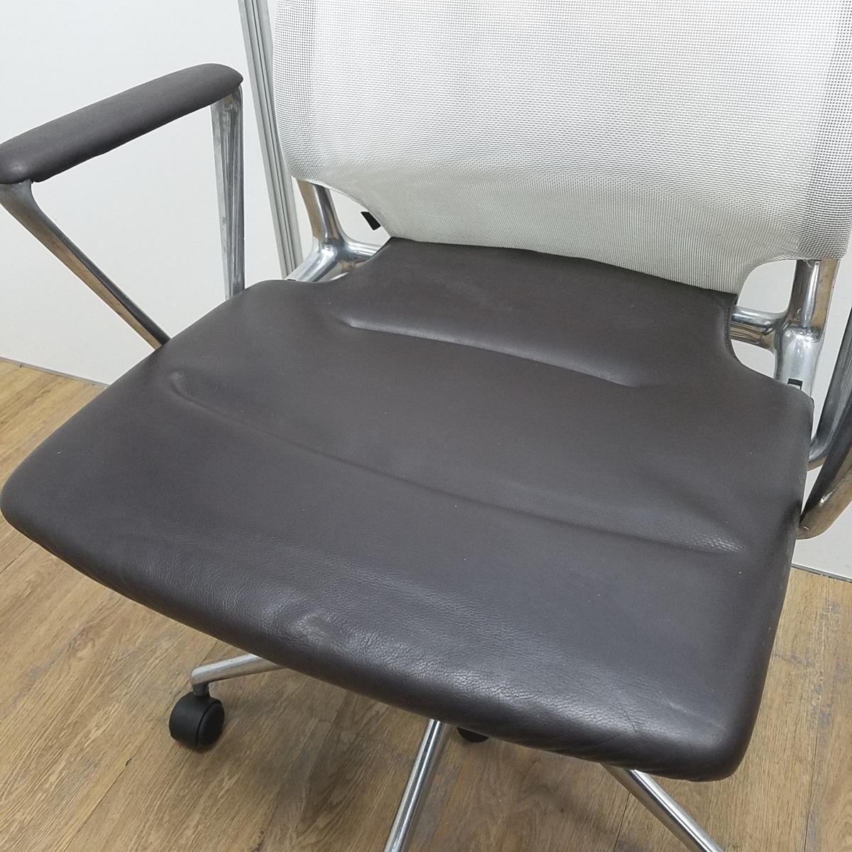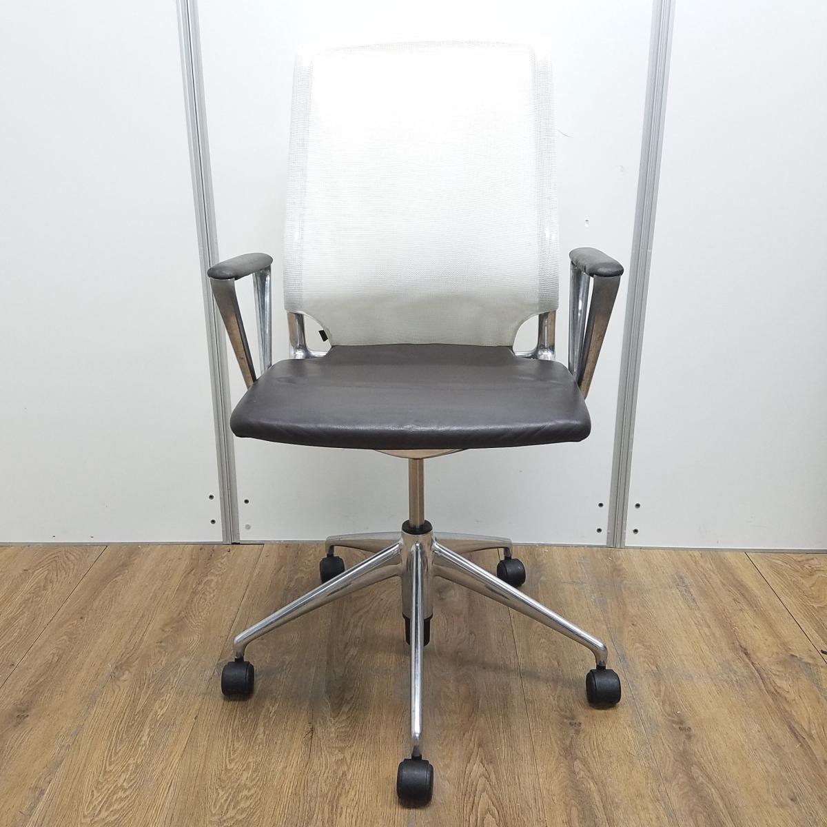 ヴィトラ製 メダ2(MEDAⅡ) ホワイトxブラウン 座面レザー デザインアーム※固定肘 ハイバック 肘付き 背面メッシュ 固定肘 世界各国でデザインアワードを受賞したスタイリッシュなメッシュチェア! 肘付きハイバックチェア!!サーキュラーバリューCO2削減量の算出について