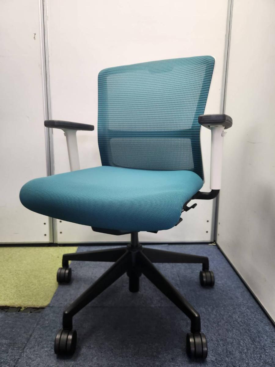 【西】【洗練されたデザインで大人気!ワンランク上の座り心地!】■ウチダ (UCHIDA)製 エルフィ (ELFIE) 肘無ミドルバック ■背面メッシュ ■アクアブルー×ブラックフレーム ■ハンガー付 *熊本市で、中古オフィス用品・オフィス家具をお探しなら「オフィスバスターズ熊本サテライト店」へ*※サテライトは商談スペースのみの為、在庫は福岡の在庫を掲載しております。商品につきましてはお電話にてお問い合わせください。
