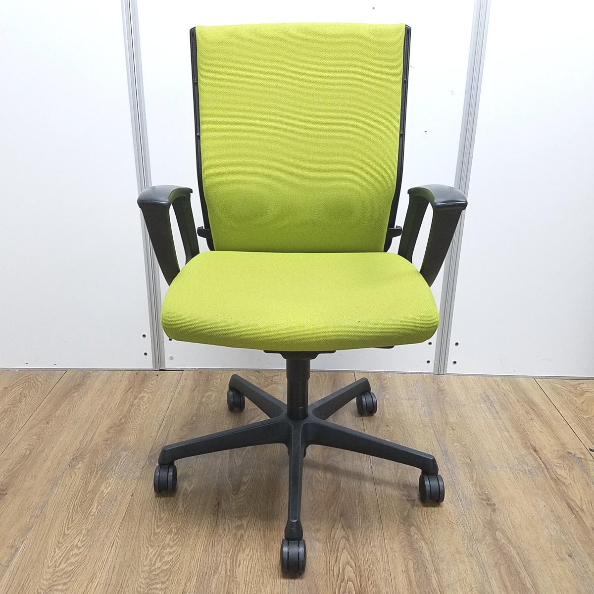 【定番のミドルクラスチェアが入荷!】雰囲気をアゲる今流行りの明るいグリーンカラー! ■オカムラ/エスクード/イエローグリーン 固定肘付き