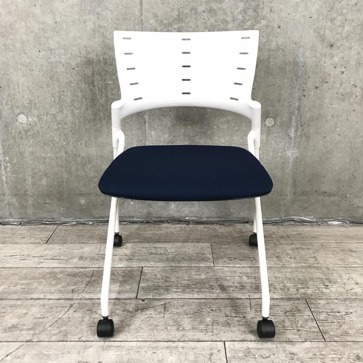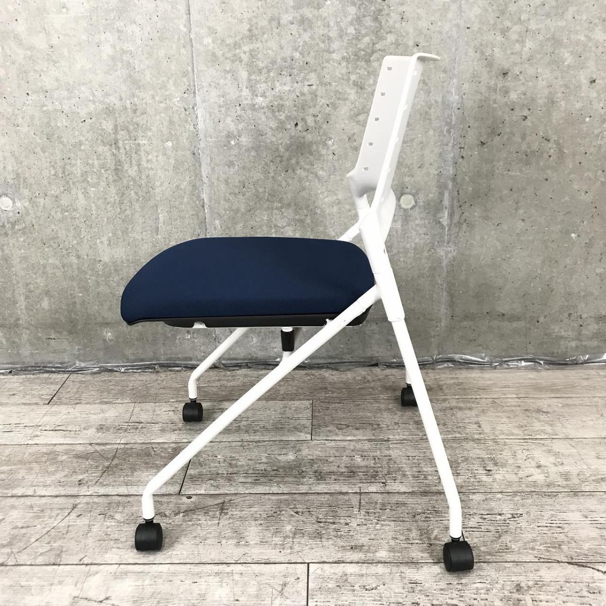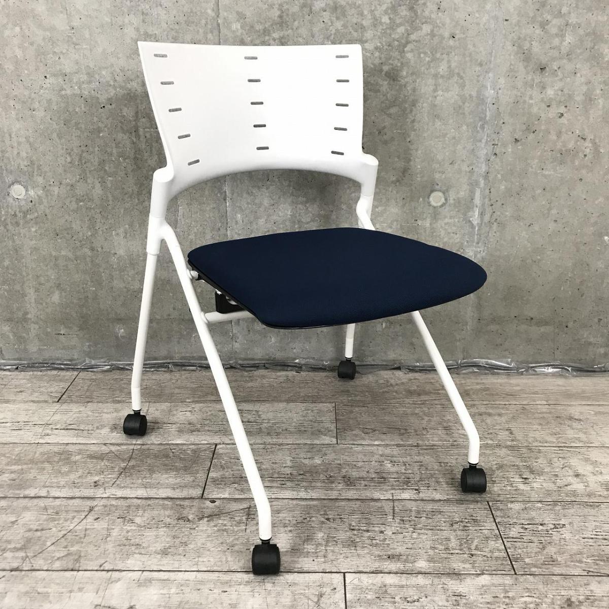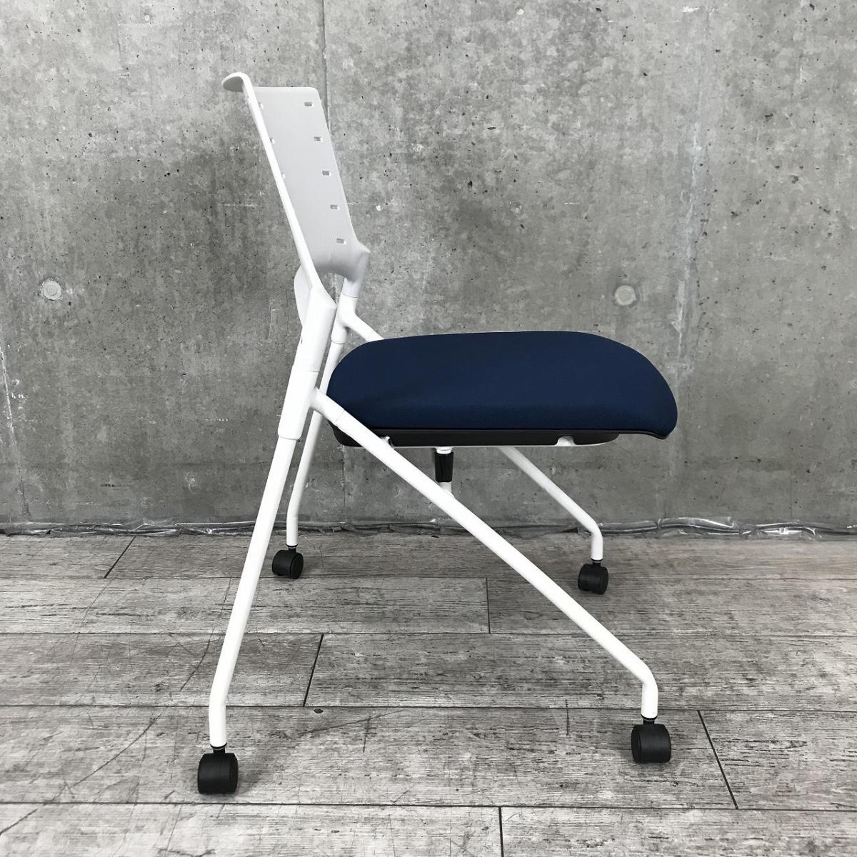 【セミナーや会議用にオススメ!平行ネスティングで省スペース化!】■イトーキ製 マノス ネスティングチェア ■背パッド付 キャスター付き ■ネイビーブルー オフィスバスターズ心斎橋店 ロット在庫