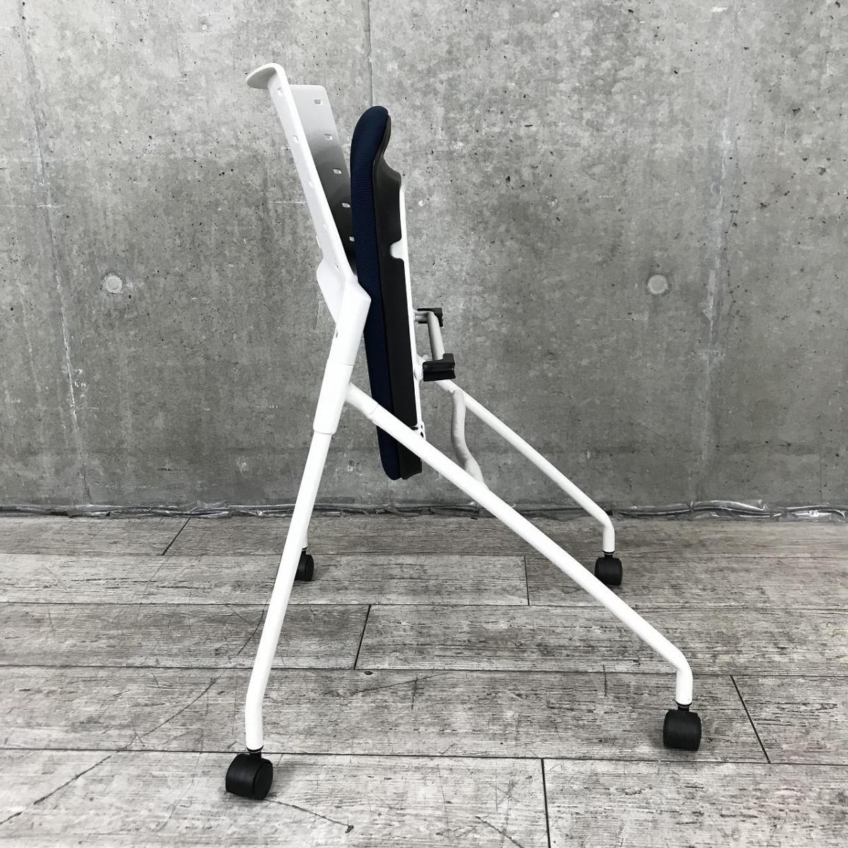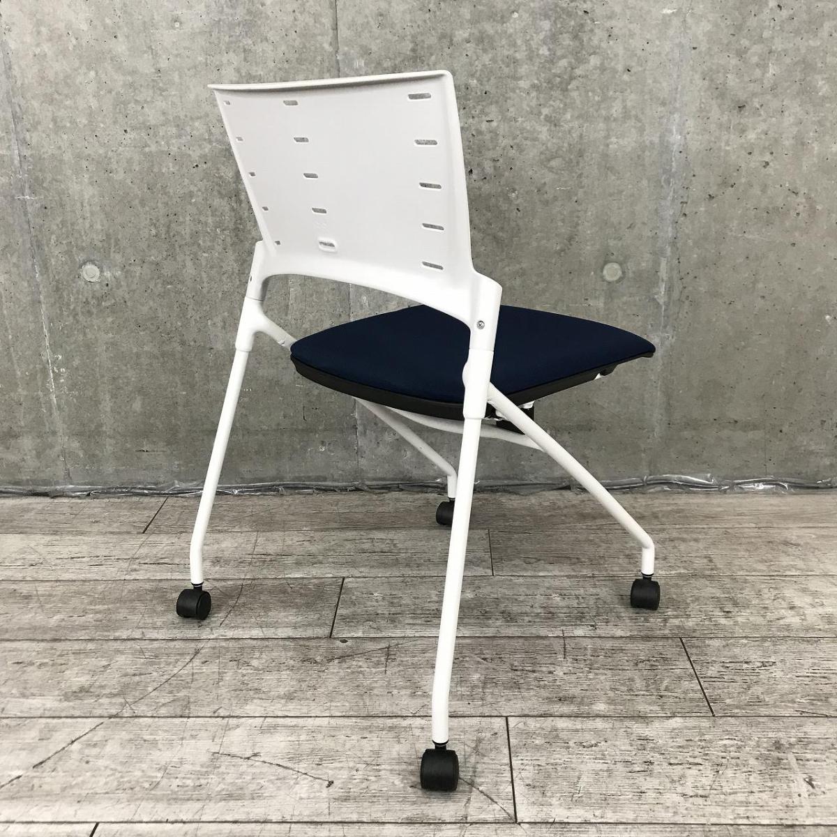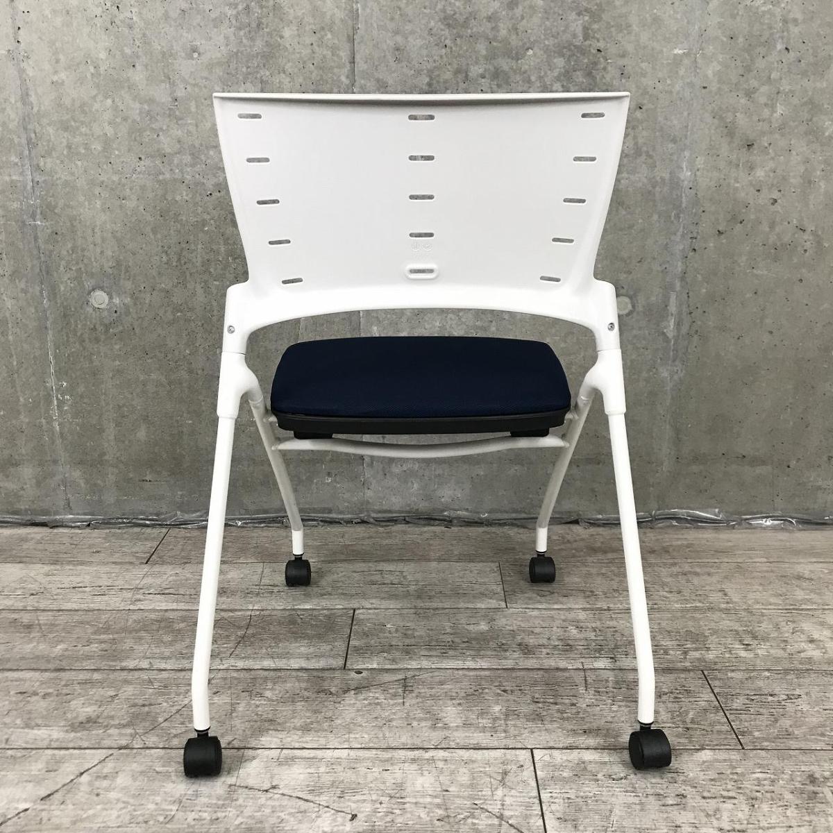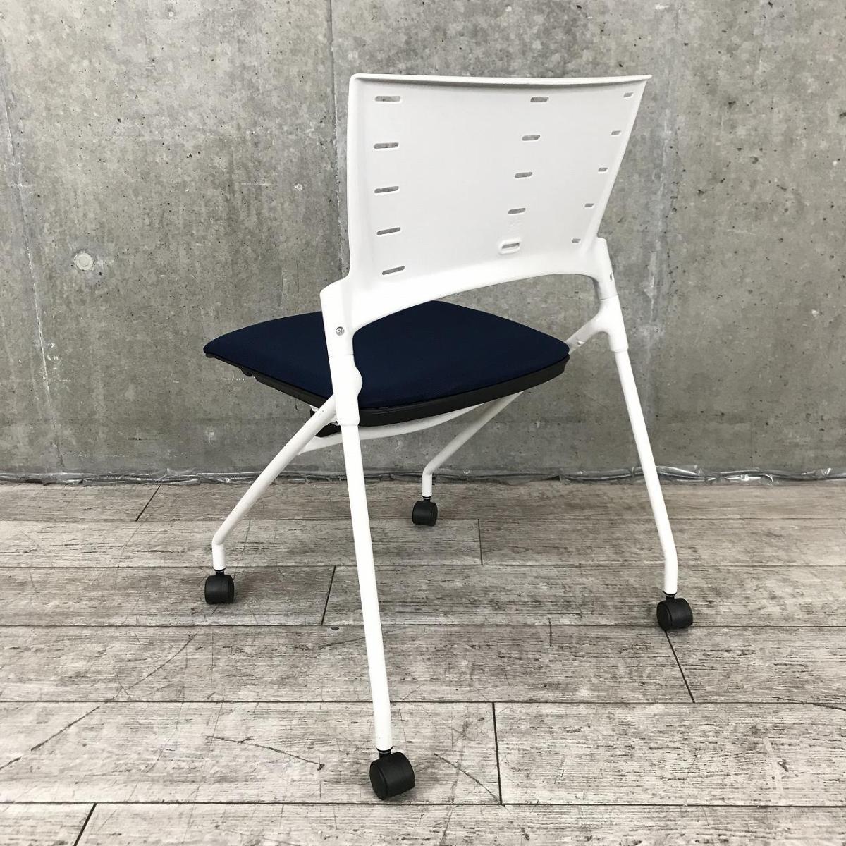 【セミナーや会議用にオススメ!平行ネスティングで省スペース化!】■イトーキ製 マノス ネスティングチェア ■背パッド付 キャスター付き ■ネイビーブルー オフィスバスターズ心斎橋店 ロット在庫