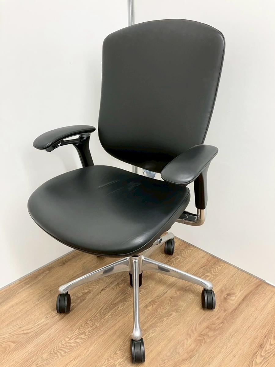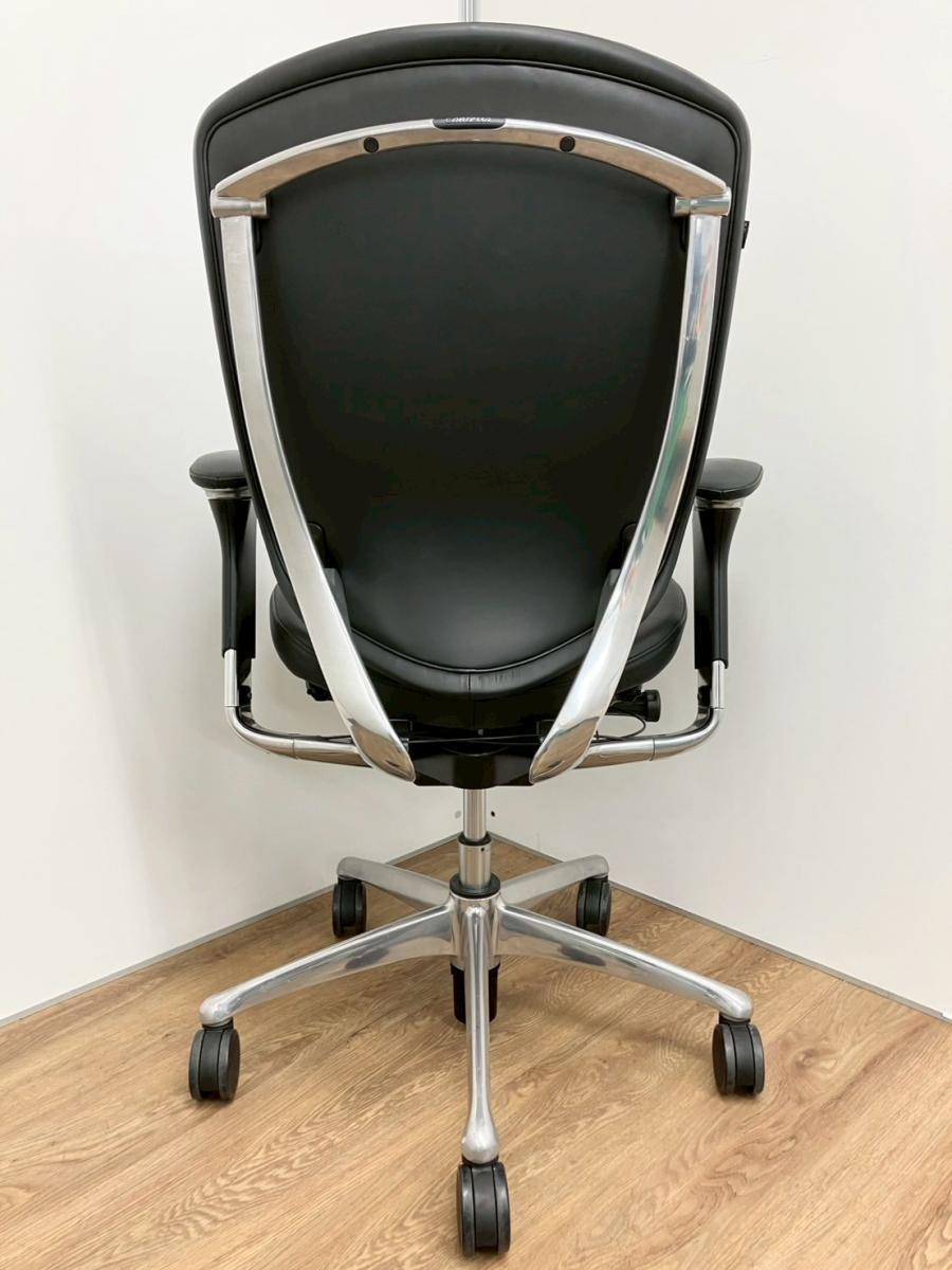 入替セール品につきお値下げ!【世界で認められた革新的タスクチェア!人間工学に基づいた快適な座り心地を実現!】オカムラ(okamura) コンテッサ (Contessa) 革張り ハイバック肘付き 可動肘 ブラック 【座面シワ・リクライニングロック解除時異音があるため、Bランク品】【現物画像】- 品川・三田店