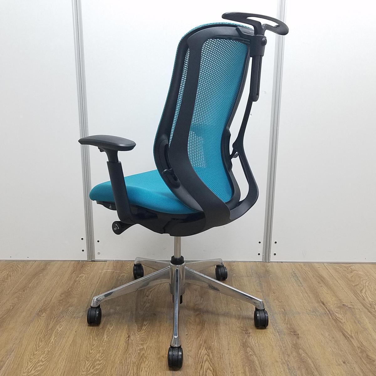 【新品ヘッドレスト交換済み】オカムラ/シルフィー/ブルー/可動肘