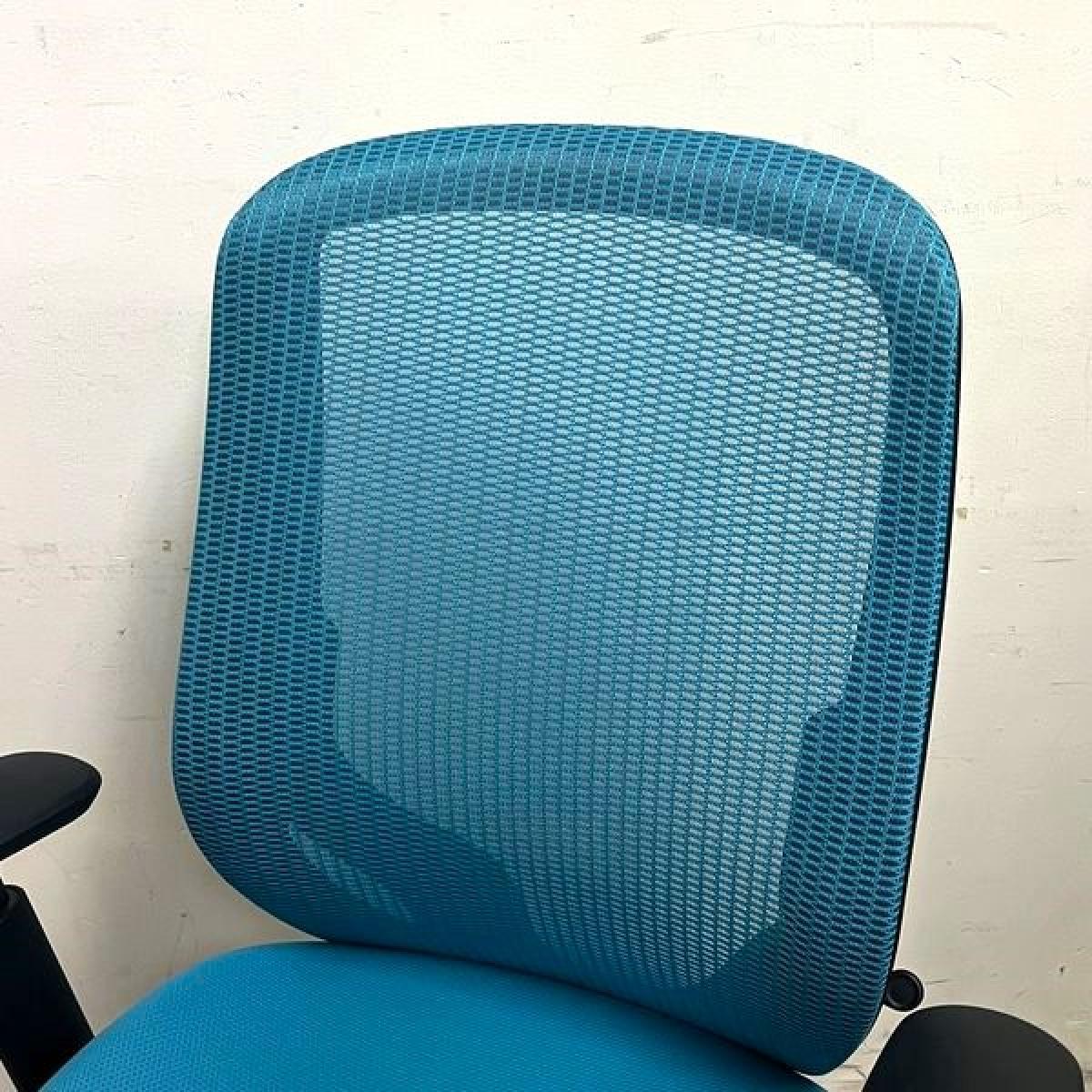 《現物写真だから安心!》オカムラ製の人気オフィスチェア【シルフィーメッシュ/可動肘/ヘッドレスト付き/ブルーグリーン】が先着1名様ご案内可能です!