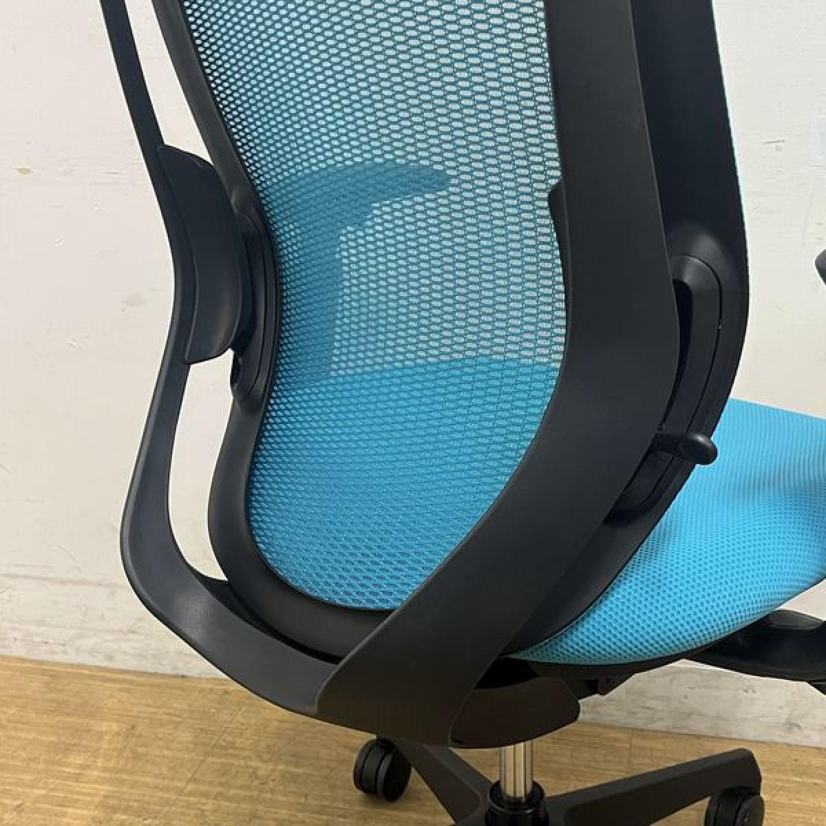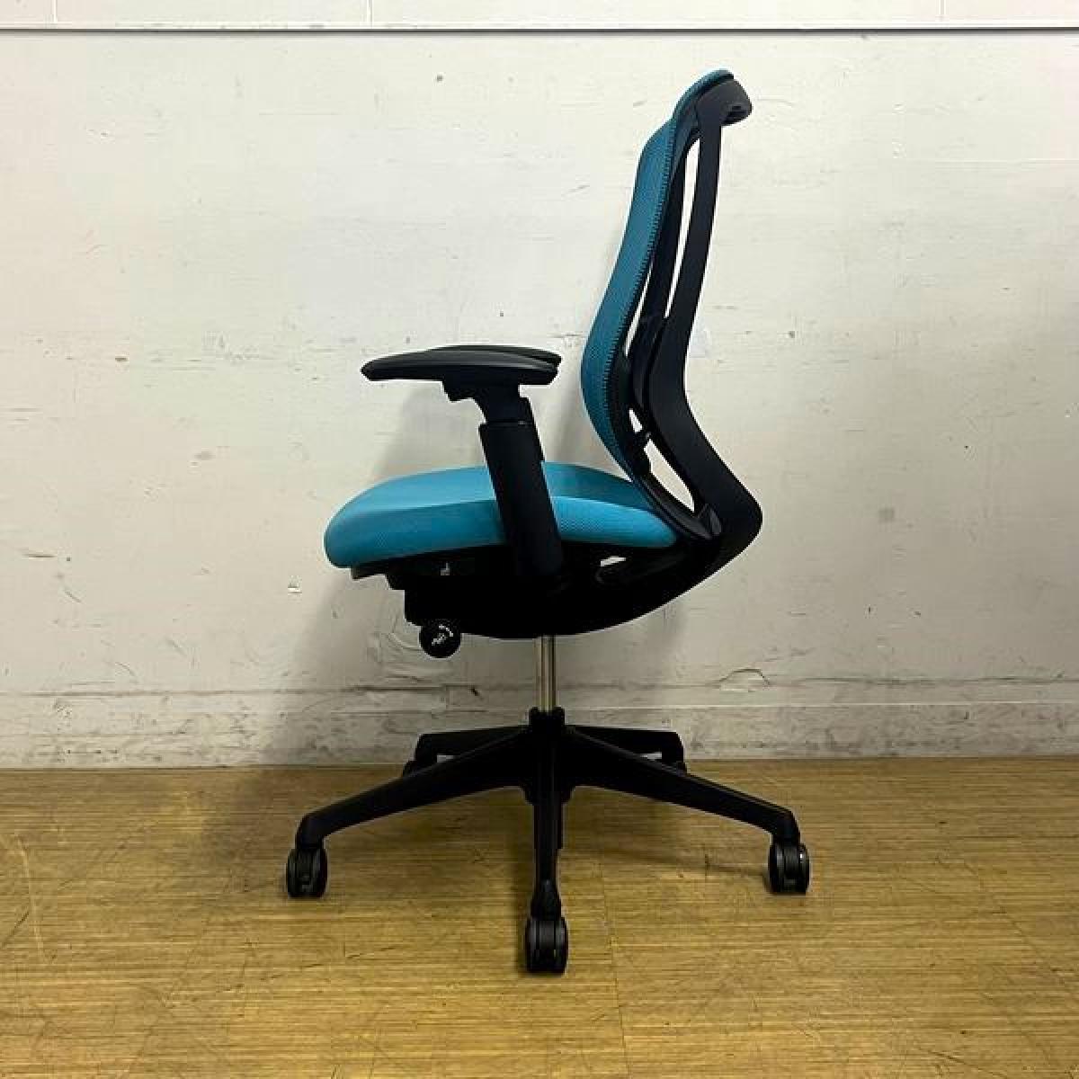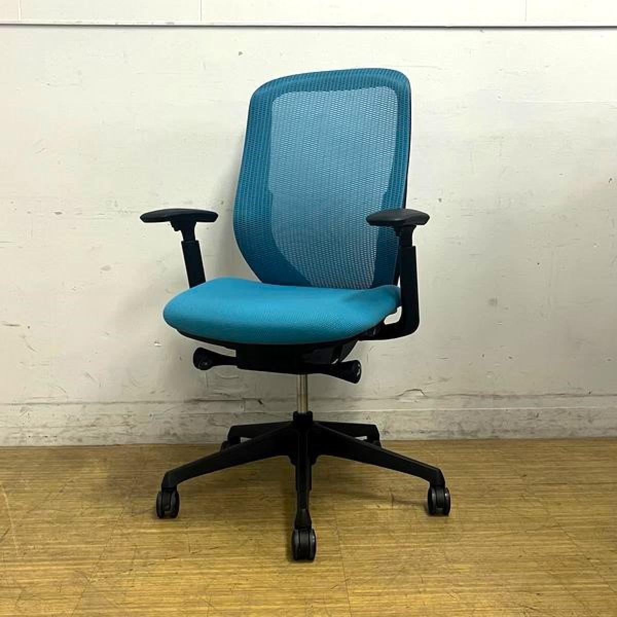 《現物写真だから安心!》オカムラ製の人気オフィスチェア【シルフィーメッシュ/可動肘/ヘッドレスト付き/ブルーグリーン】が先着1名様ご案内可能です!