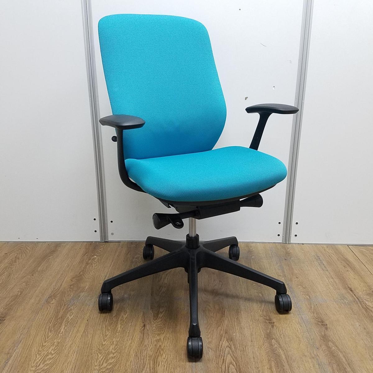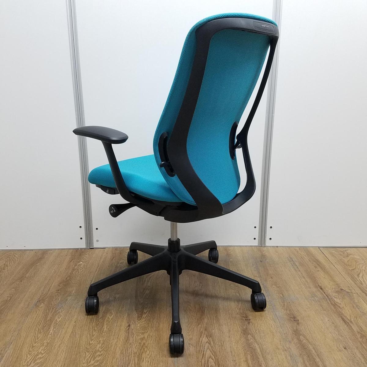 【背のカーブを変えられる! 新感覚のオフィスシーティング!】■オカムラ(okamura)製 シルフィーチェア 肘付 ■固定肘 ■ブルーグリーン×ブラックシェル【入替セールにつき30%OFF!】- つくば店