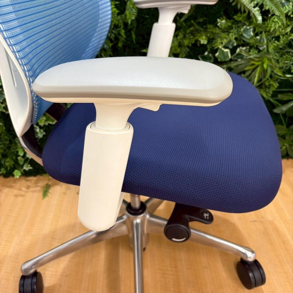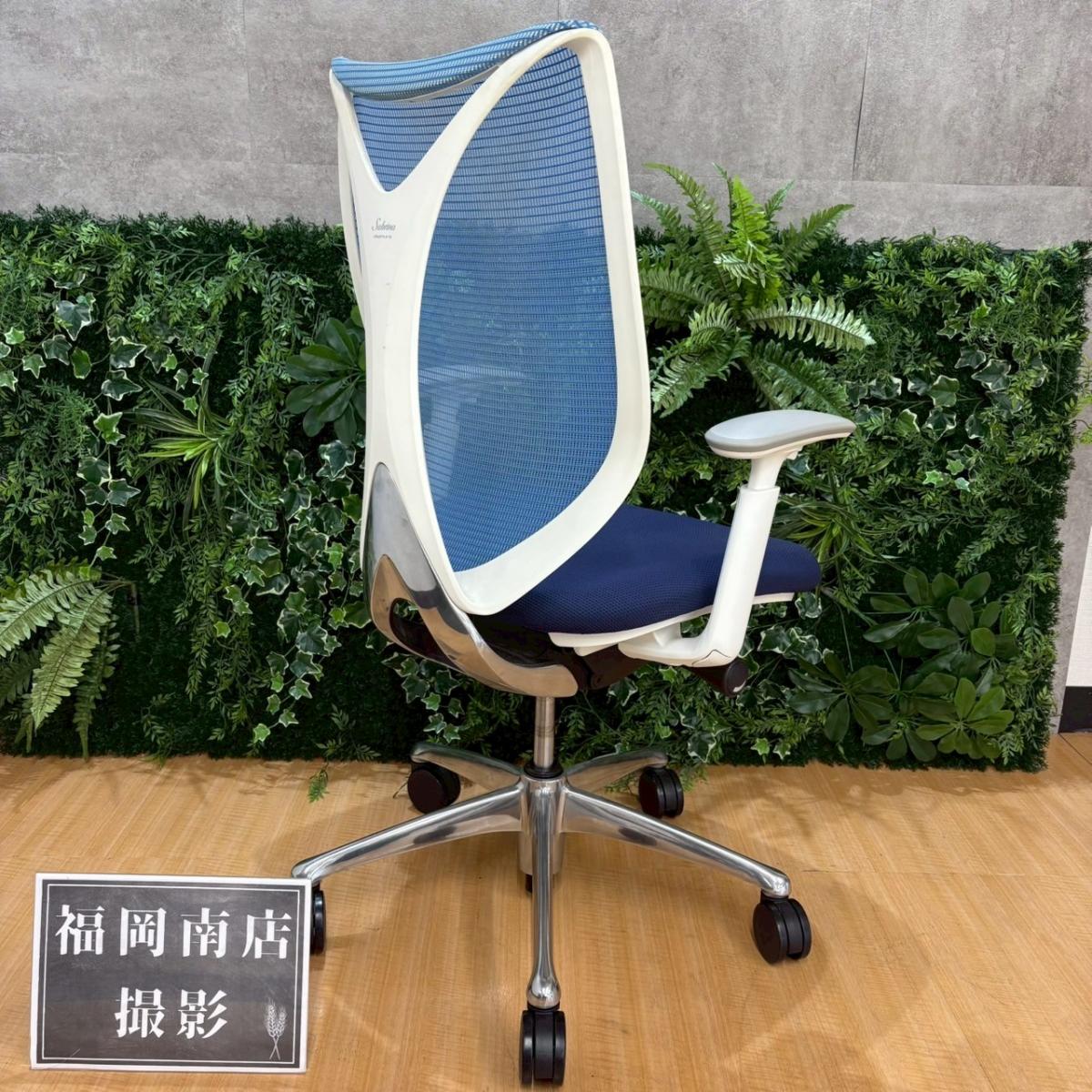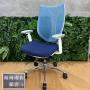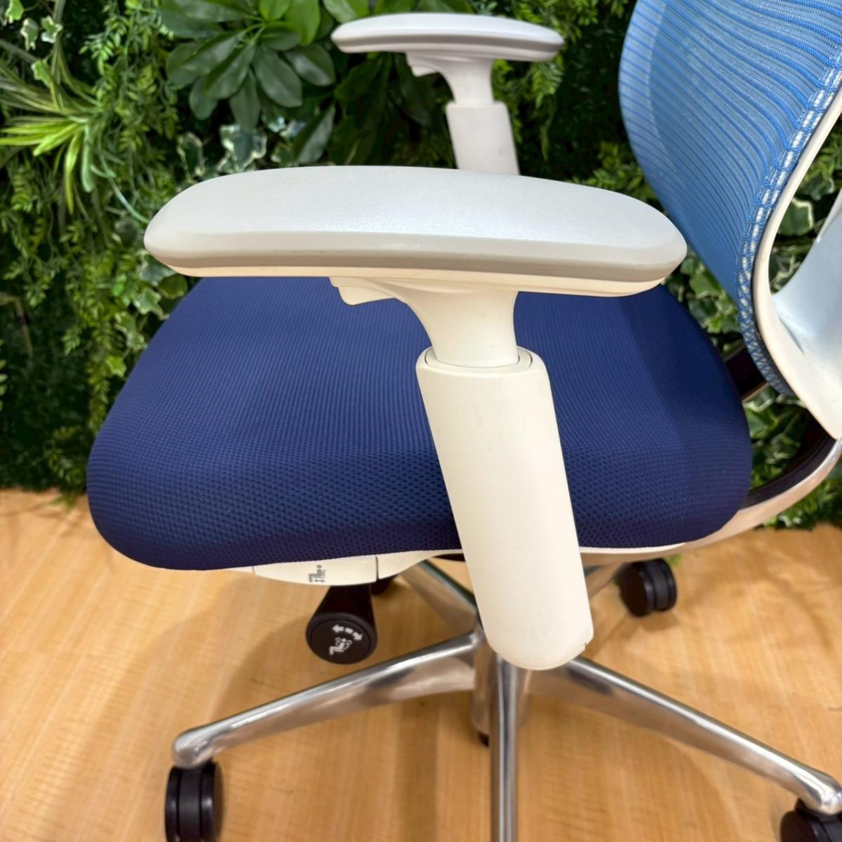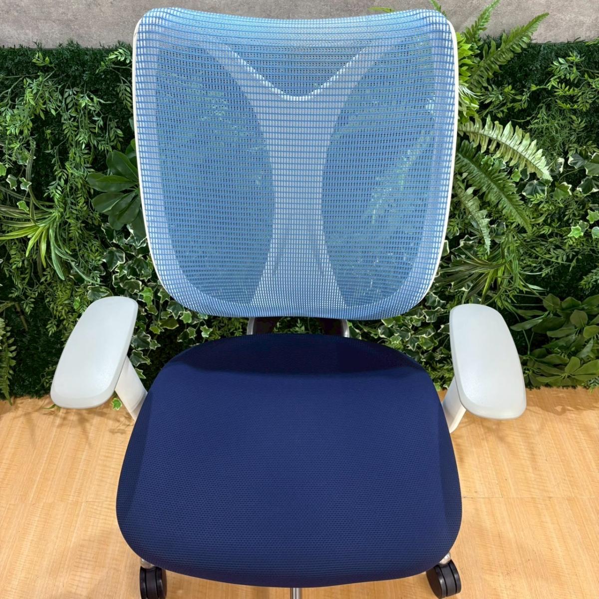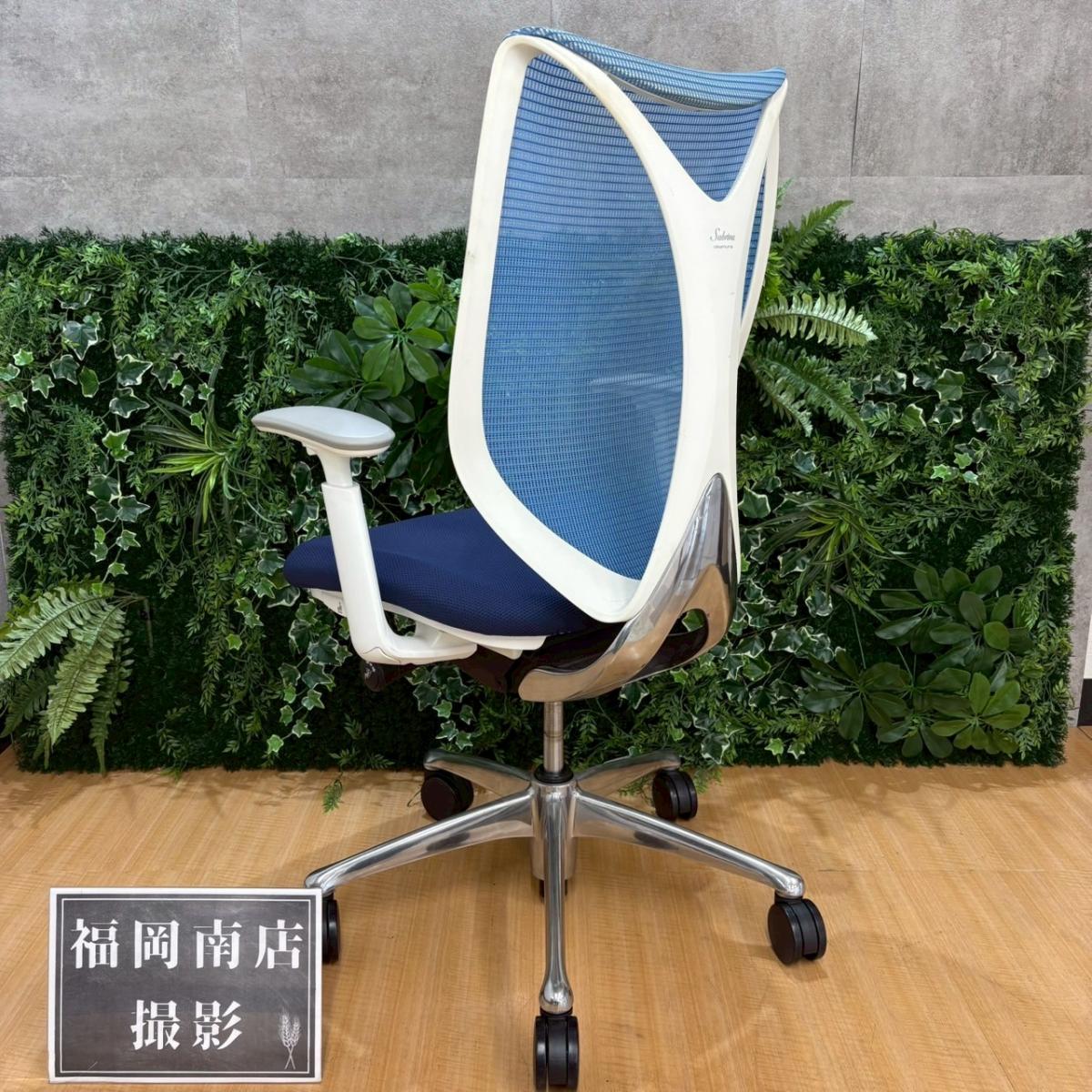 【前傾チルト付!流れるような美しいフォルムの最高級メッシュチェア!】■オカムラ(okamura)製 Sabrina(サブリナ) ハイバック 肘付き ■可動肘 ■背面メッシュ:アクアブルー 座面:ブルー ホワイトフレーム