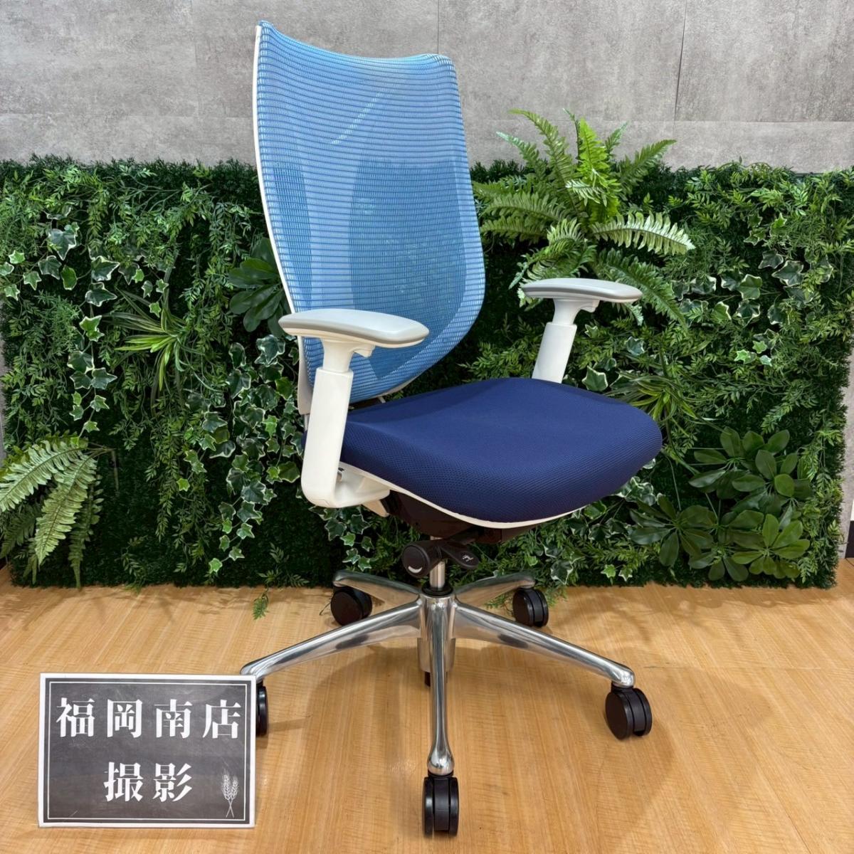 《9-10月 在庫入替セール品 26/③》オカムラ製の人気チェア【サブリナ/ライトブルー色/可動肘】が値下げされました! *「オフィスバスターズ福岡南店」は、福岡を拠点として、全国へ中古オフィス用品・オフィス家具を提供しております。- 福岡南店