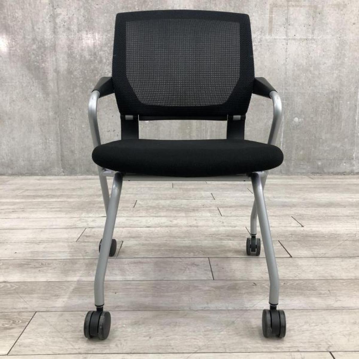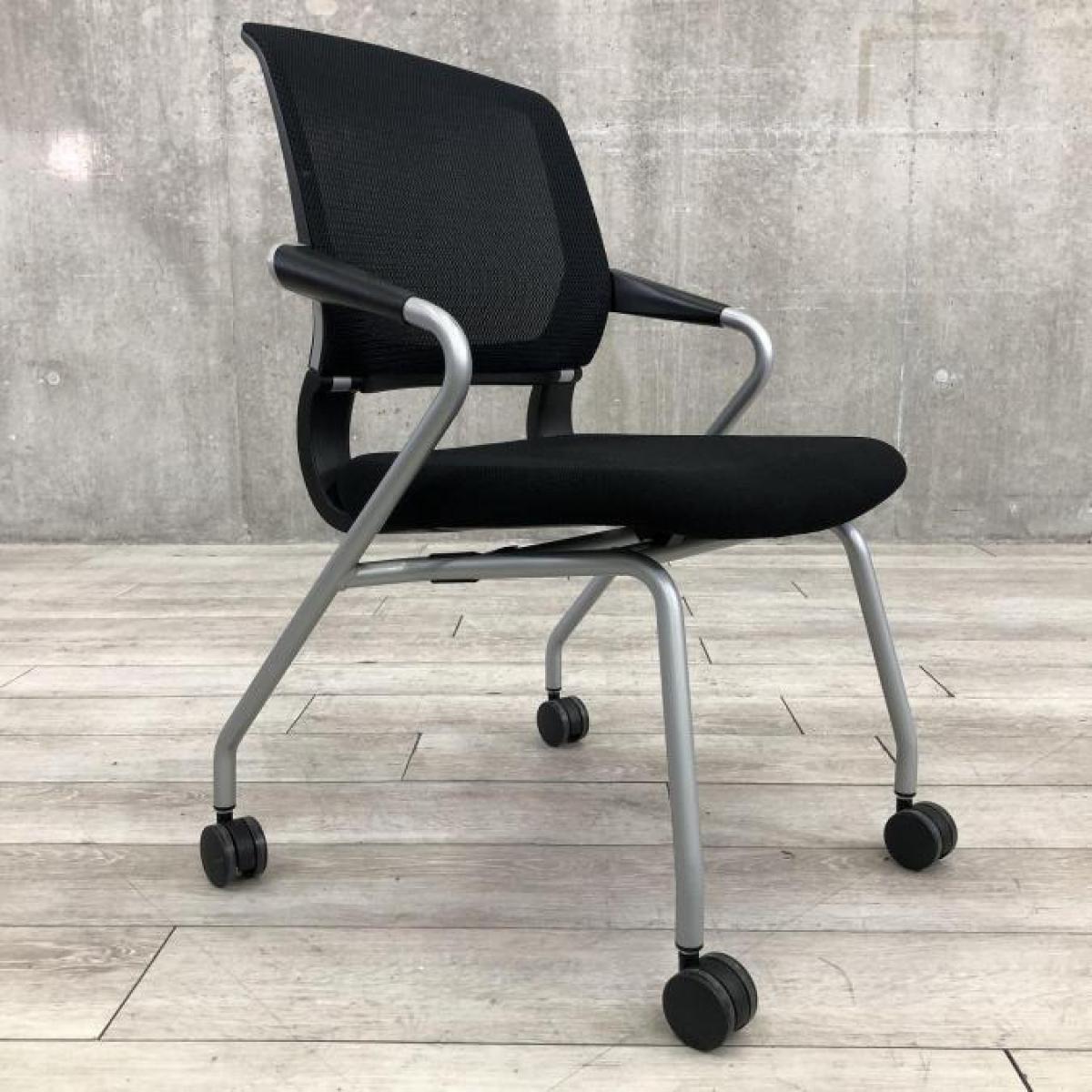 【18脚大量入荷】【背にフィットする快適メッシュ!横に積めて収納できるネスティングチェア!】■コクヨ(KOKUYO)製 サテリテチェア 肘付ミーティングチェア ■キャスター付 ■背面メッシュ ■ブラック 【会議室・セミナールームにもおすすめ!】- 神戸・三宮店