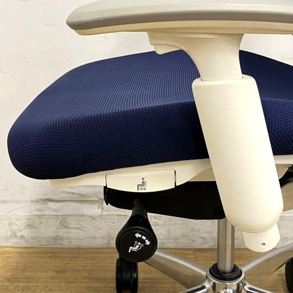 【在庫入替セール】オカムラ サブリナ スタンダードモデル 背:アクアブルー×座:ダークブルー×フレーム:ホワイト アジャストアーム 前傾機能搭載モデル シルフィーの上位互換モデル- 名古屋千種店