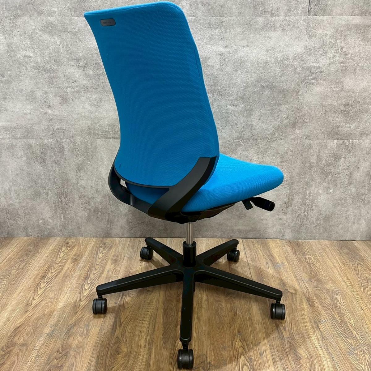 ★【商品入替のため、残り1脚限り】コクヨ製 ミトラシリーズ ターコイズブルー×ホワイトフレーム メッシュ背面 ランバーサポート付 快適な座り心地と充実機能 肘無しローバックチェア!!