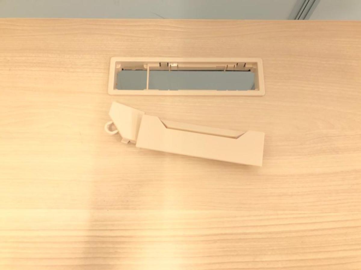 - 机の角がシャープなので、隣り合うデスクがフラットにつながります。すっきりとしたデザインです。