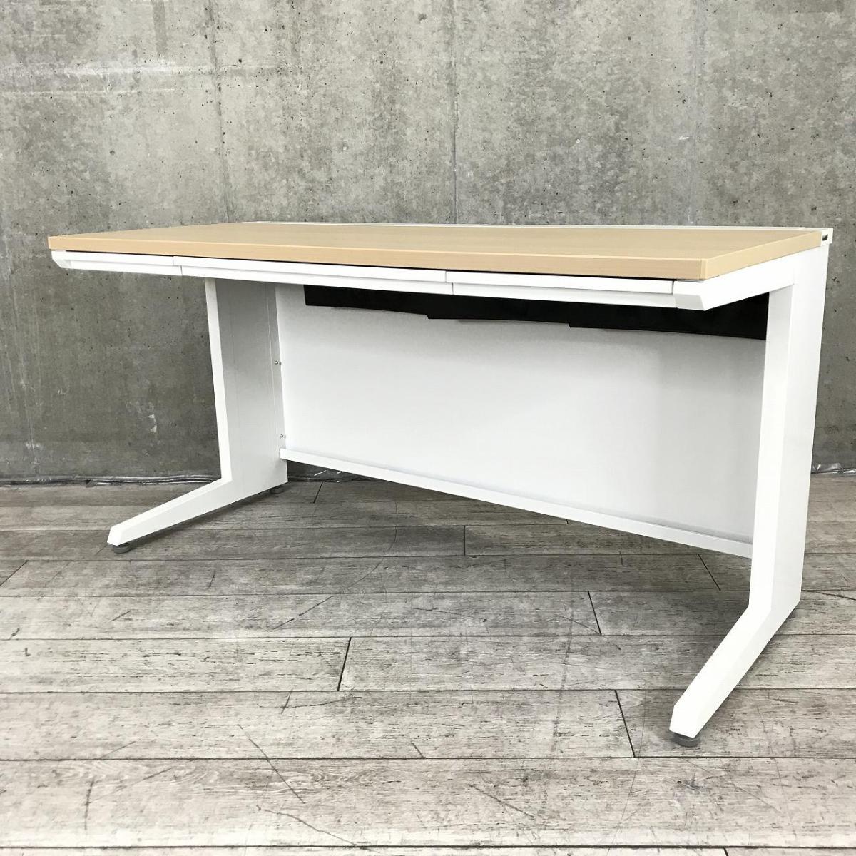 【ゆとりのあるワークスペースで作業効率アップ!】■オカムラ(okamura)製 アドバンス(ADVANCE)シリーズ 平机 引き出し無し W1400×D700×H720mm ■ホワイト / 天板:ナチュラル木目調 オフィスバスターズ東大阪店【K11】