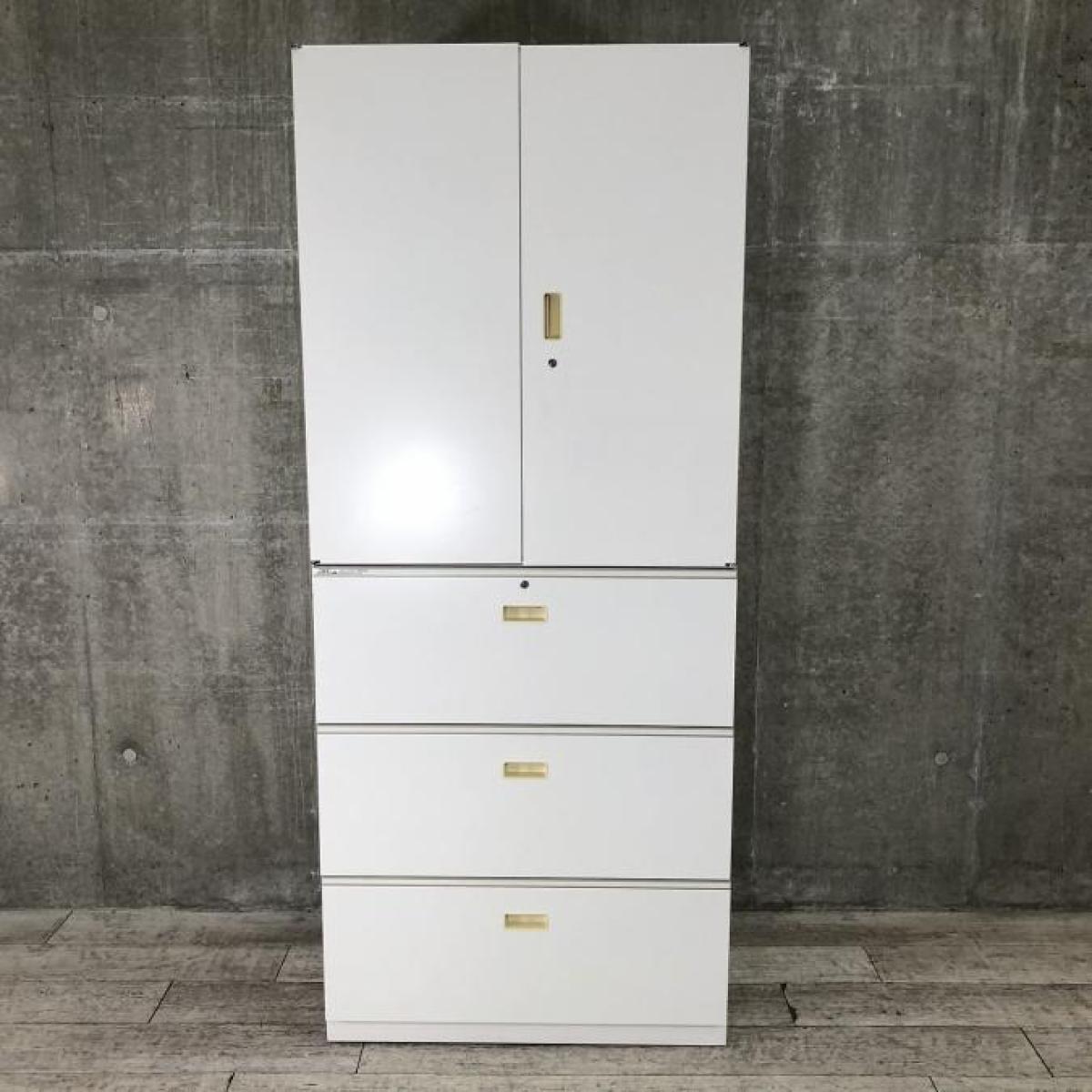 オフィス書類をスッキリ整理!定番の大収容キャビネット!観音開き+3段引き出しタイプ! ■イトーキ/シンライン/ホワイト- 立川・八王子店