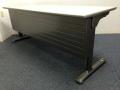 【天板跳ね上げ式でコンパクトに収納!】■オカムラ製 サイドフォールドテーブル スタックテーブル ■幕板付 ■グレー- なんば日本橋店