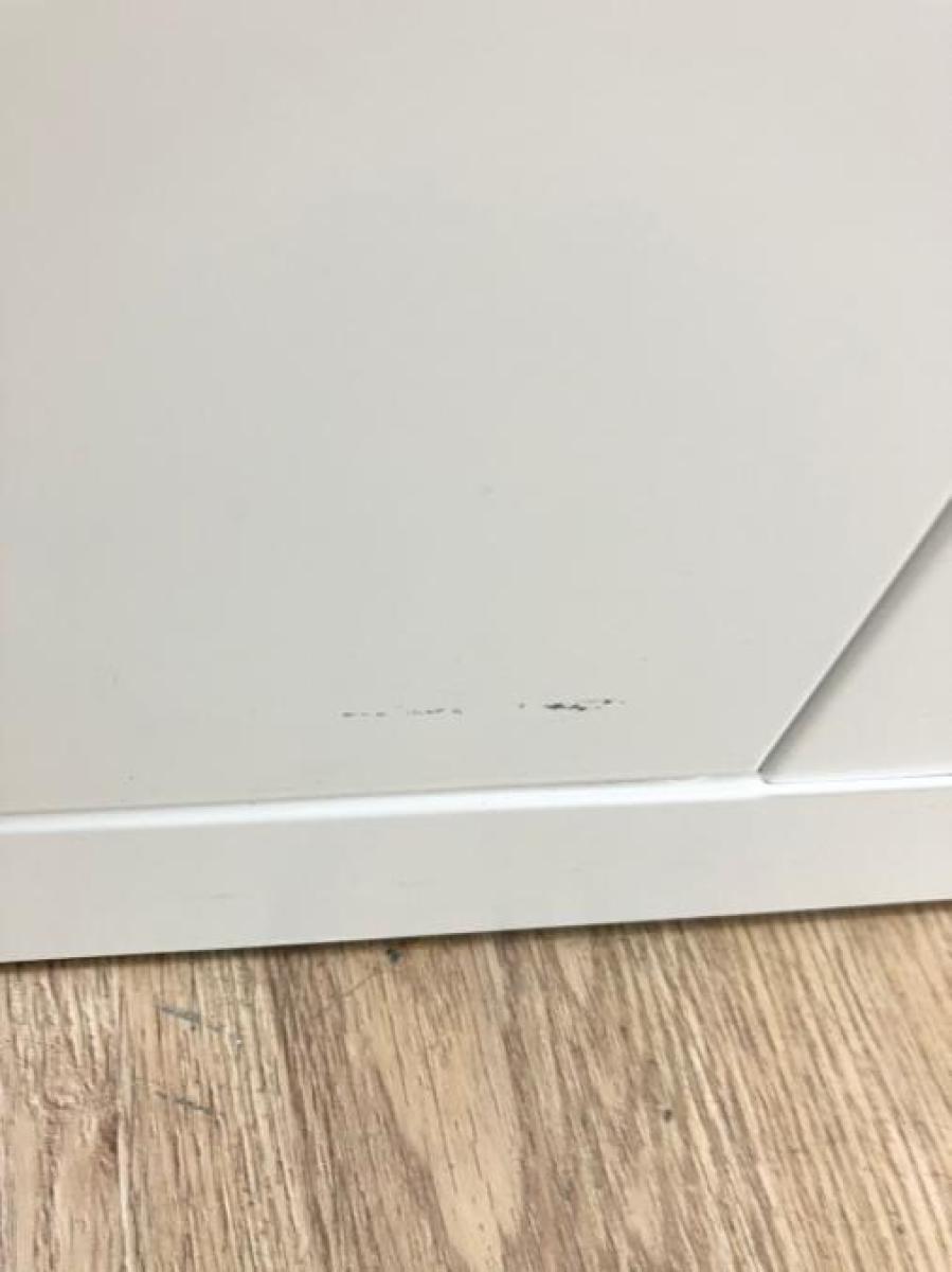 - かなり強い黄ばみ・変色が商品全体にある。(例、天板、正面、背部、サイド部分にある。)
