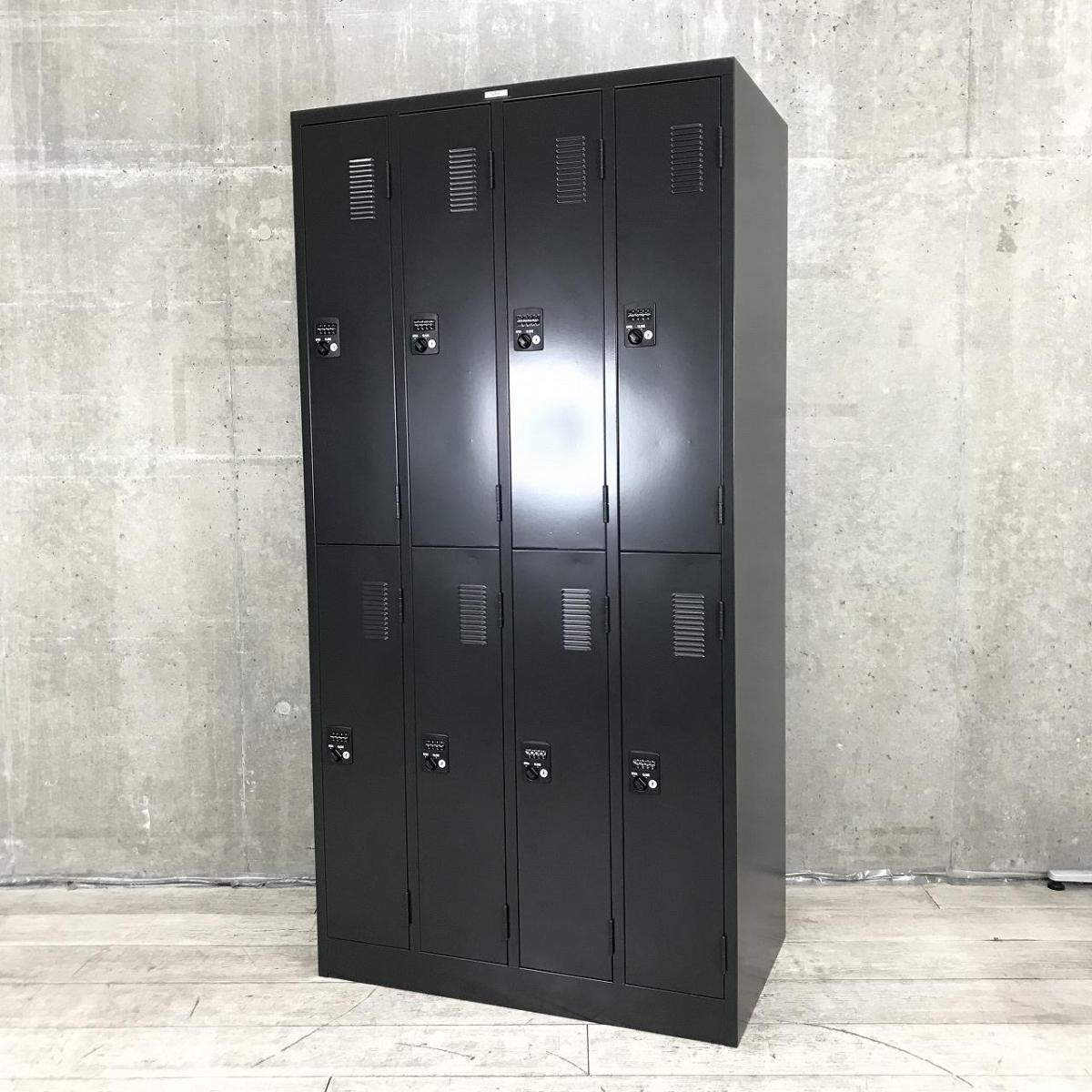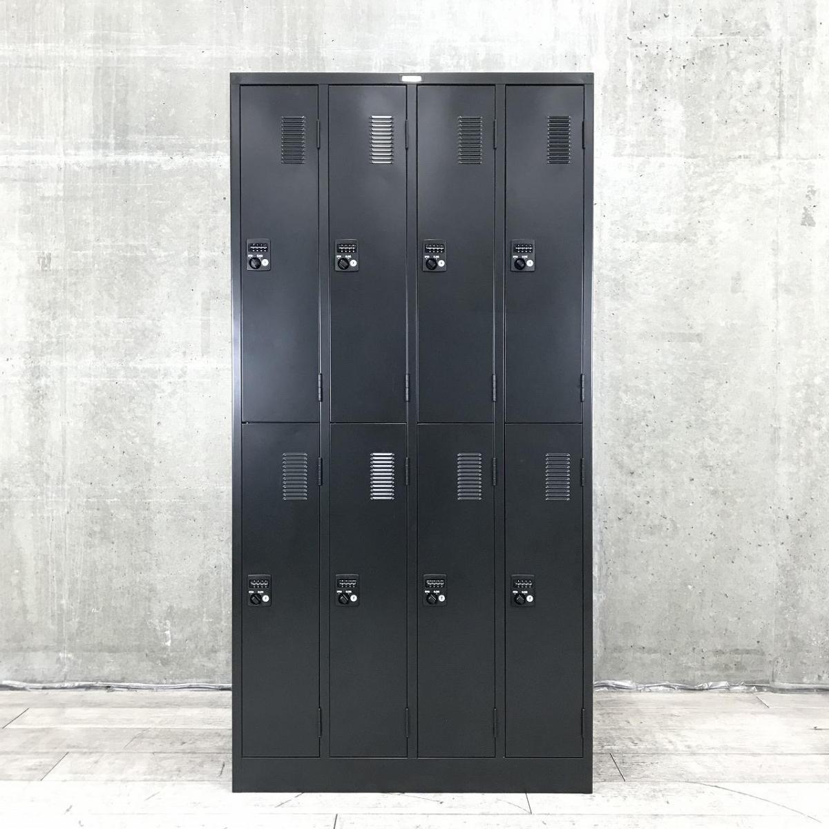 【省スペースに設置できる!上下収納タイプ!】■ナイキ製 8人用ロッカー ダイヤル錠タイプ ブラック ■ダイヤル錠タイプでセキュリティ対策もバッチリ!- 川崎店