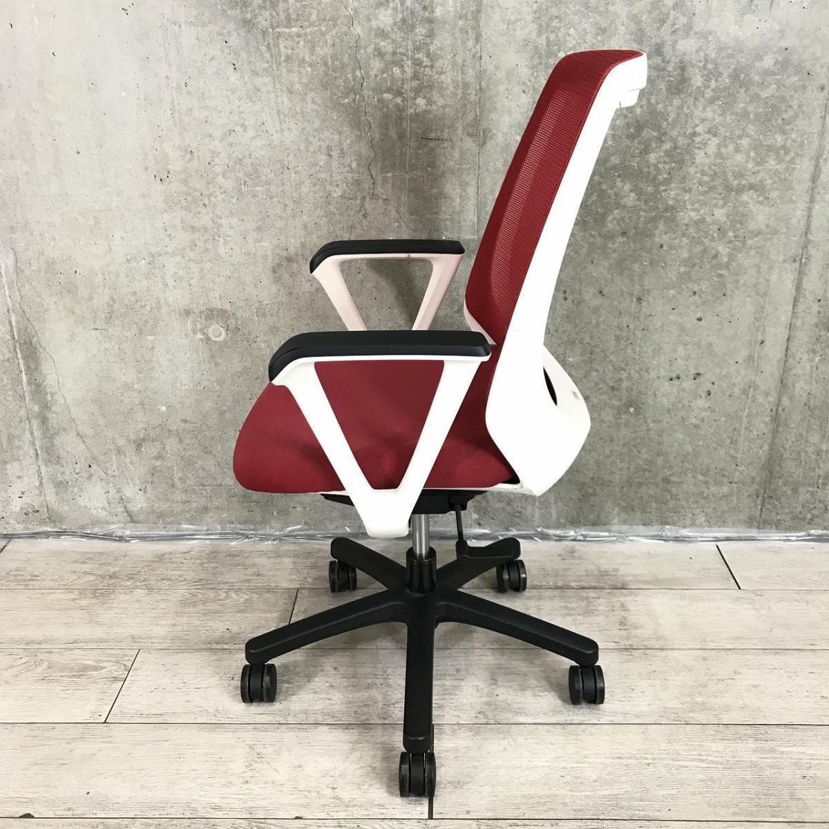 【座りやすくてコンパクト!肩回りが動かしやすい背面メッシュの人気チェア!】■イトーキ(ITOKI) ノナ(nona)チェア ハイバック 肘付き ■サークル肘 ■背面メッシュ ■ラズベリーレッド × ホワイトフレーム【K9】