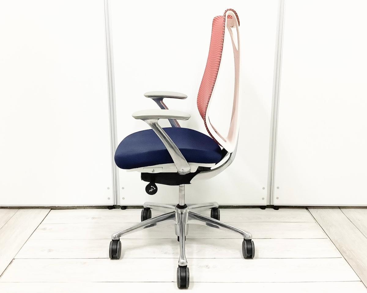 【在庫入替セール】【人間工学から生まれた最先端のワーキングチェア!】■オカムラ サブリナチェア 可動肘付 背:レッド / 座:ダークブルー ■流れるような美しいフォルム!姿勢に心地よくフィット!【K12】
