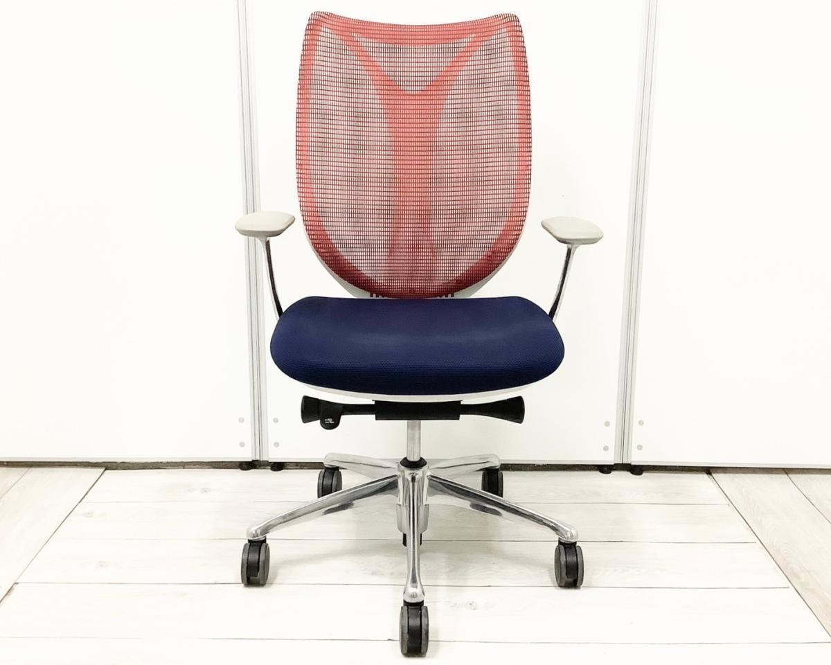 【来店限定キャンペーン】【在庫入替セール品】【人間工学から生まれた最先端のワーキングチェア!】■オカムラ サブリナチェア 可動肘付 背:レッド / 座:ダークブルー ■流れるような美しいフォルム!姿勢に心地よくフィット!【弊社使用欄:A00994649】【ID】