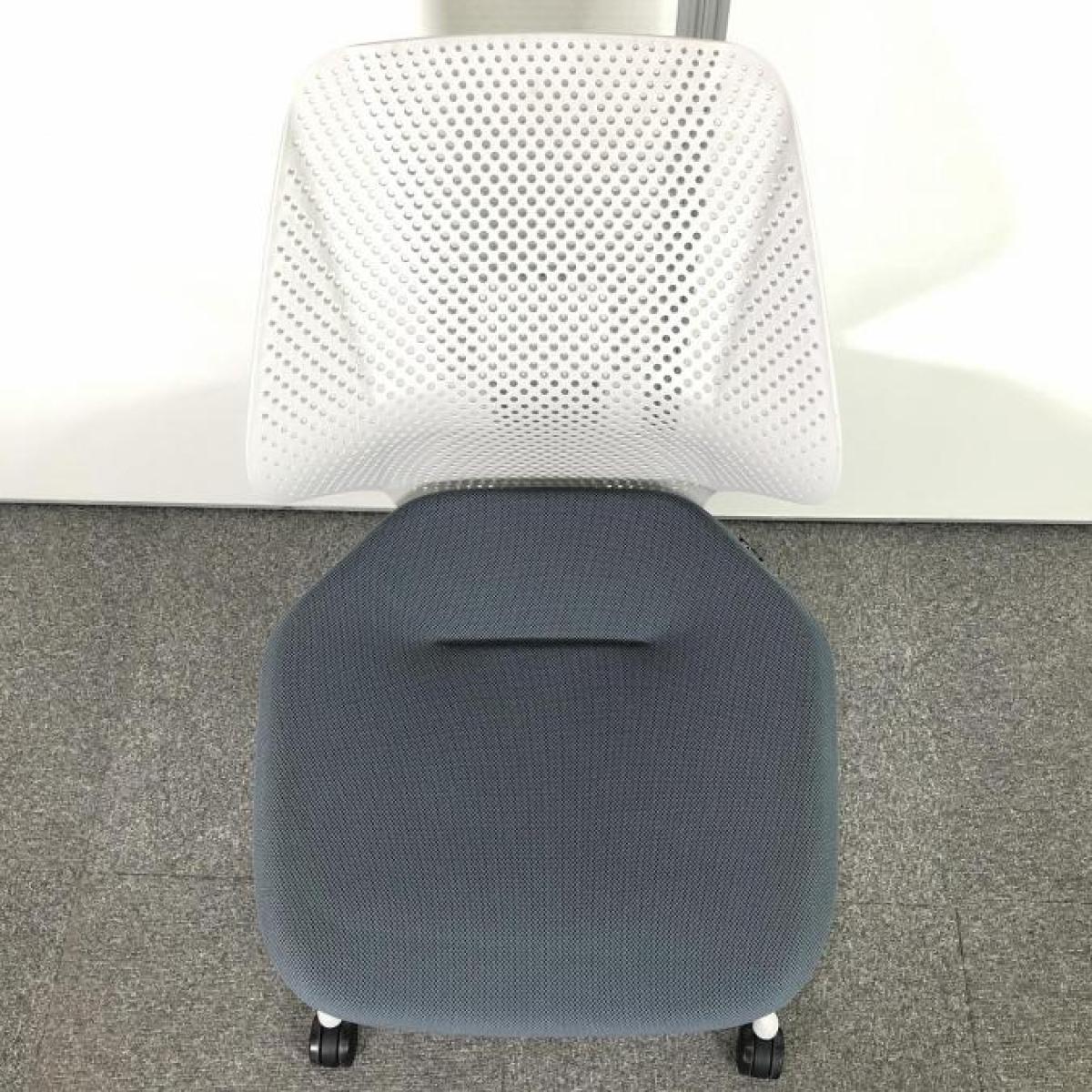 【オフィスに新しい風を吹き込むライトタスクチェア!】【腰回りをしっかりサポート!】■イトーキ製(ITOKI)製 キュアチェア(QuA) 肘無 ミーティングチェア 5本脚 ■背面樹脂メッシュ ■背面:ホワイト/座面:ダークグレー【2509】弊社使用欄【A01032806】