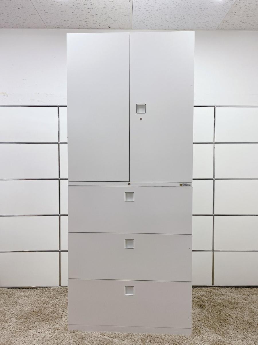 【オフィスの書類をスッキリ整理!大人気レクトラインの上下書庫セット!】■オカムラ(okamura)製 レクトラインシリーズ 両開き+3段ラテラル 書庫セット H2150㎜ ■シリンダー錠 ■ホワイト