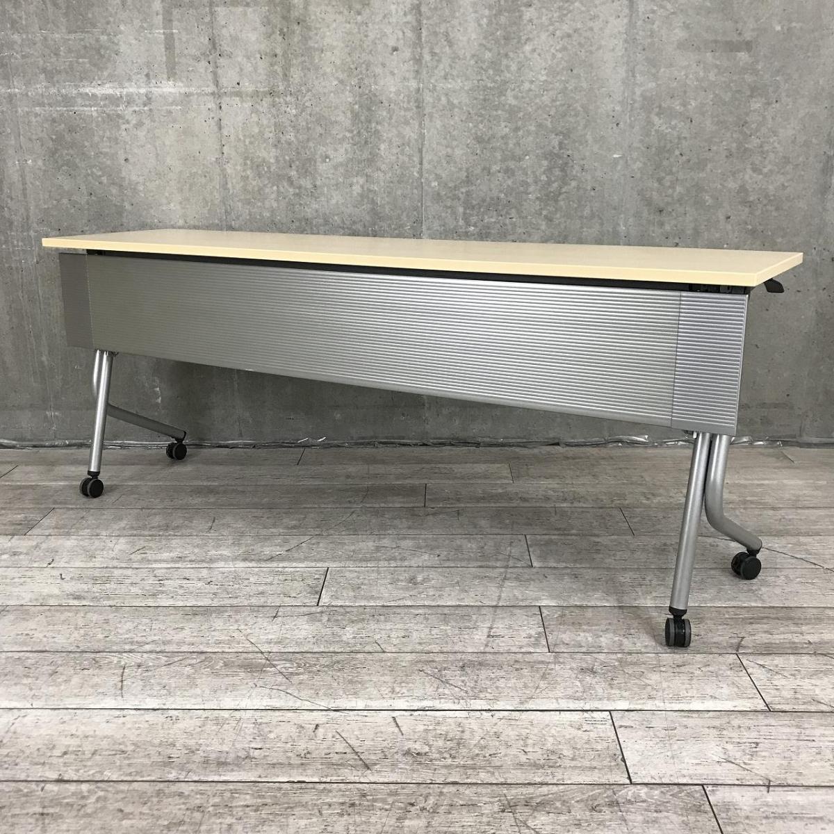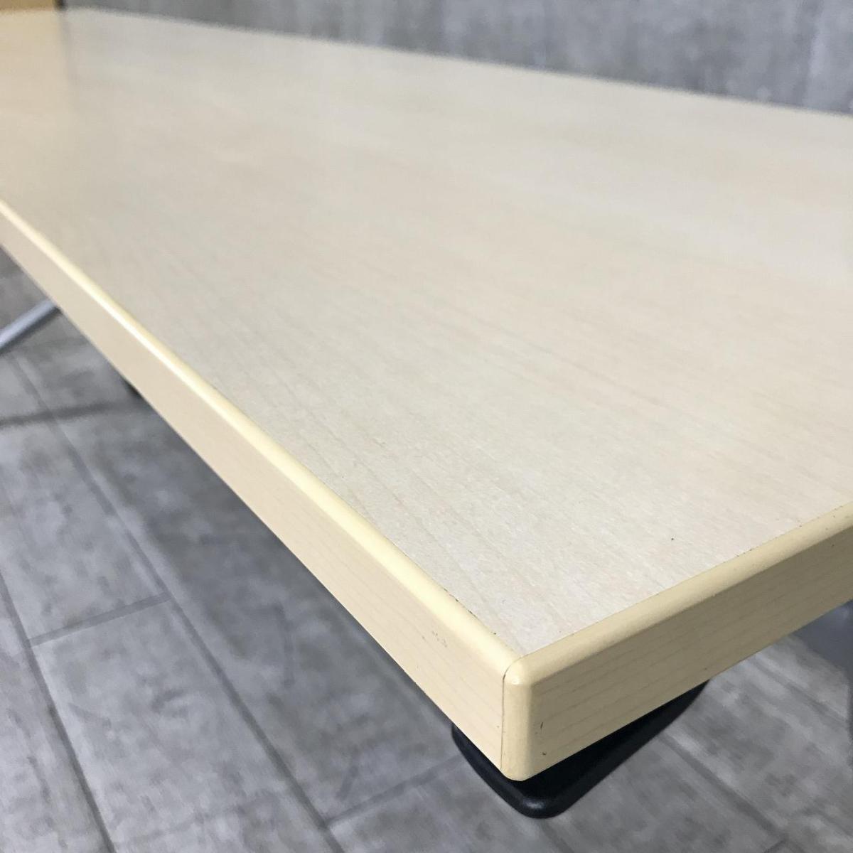 【定価約8万円】【天板ナチュラルカラーの人気サイドスタックテーブル!2~3人使用に最適!】■オカムラ(okamura) 製 ネスティアシリーズ(NESTIA) サイドスタックテーブル W1800×D450㎜ ■幕板付 ■木目ナチュラル- 千葉店