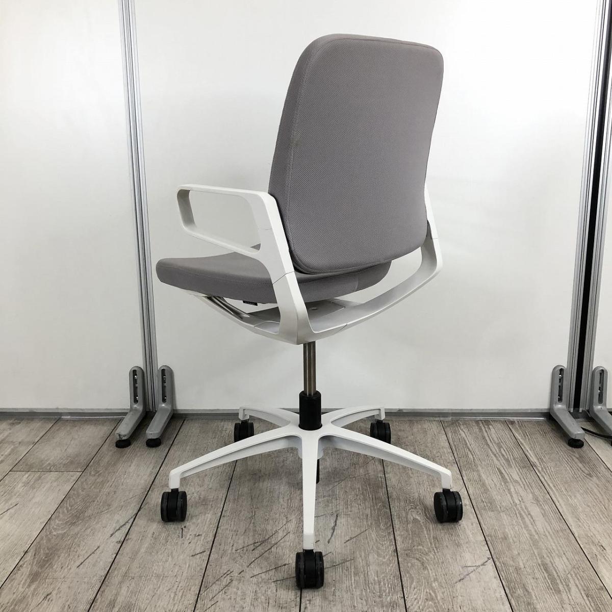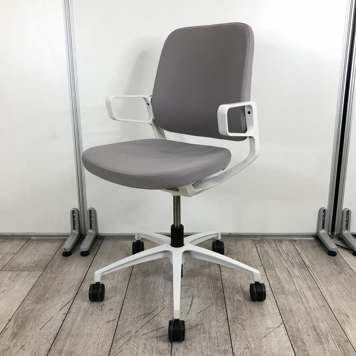 【様々な空間にフィットするスマートなデザイン!デスクワークにもミーティングにも!】■イトーキ(ITOKI)製 レヴィチェア(Levi) 肘付き ミーティングチェア ■サークル肘 ■5本脚タイプ/キャスター付き ■グレー×ホワイトシェル- 千葉店