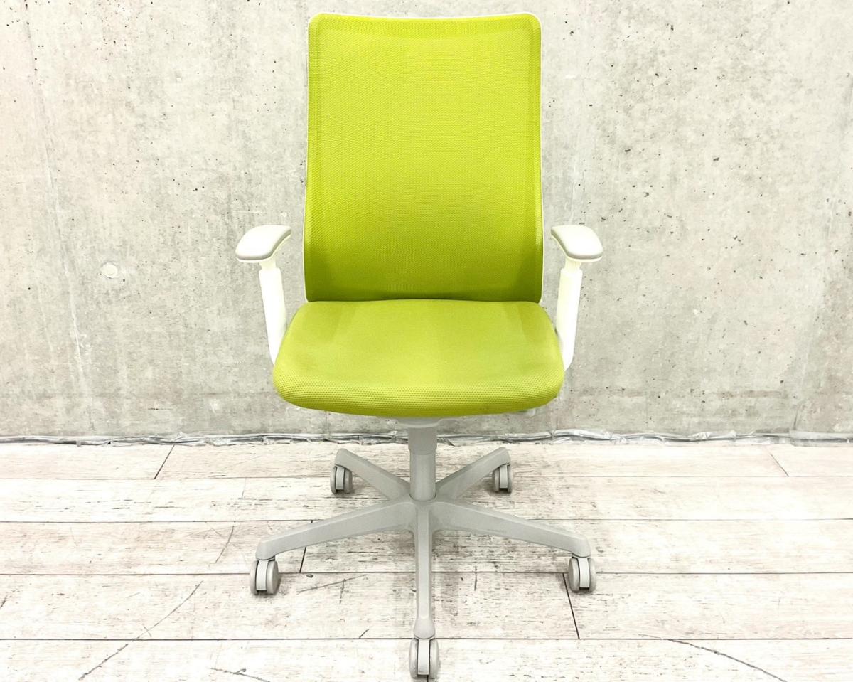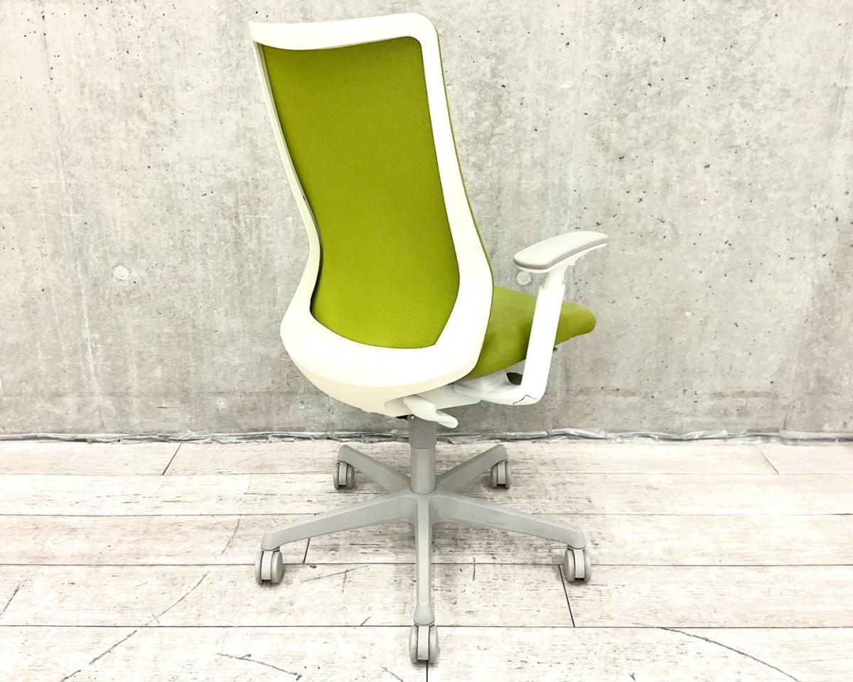 【在庫入替セール品】【背中を立体的に包み込む!シルフィの座り心地を低コストで再現!】■オカムラ(okamura)製 フルーエントチェア 肘付ハイバック 背面メッシュ ■可動肘付き ■グリーン【弊社使用欄:A01021117 K】【ID】サーキュラーバリューCO2削減量の算出について