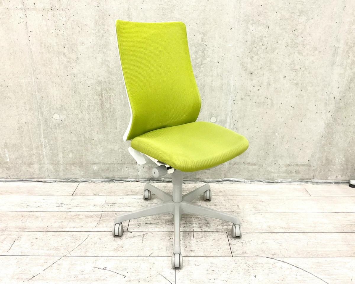 【在庫入替セール品】【夏でも蒸れにくいメッシュチェア!】■オカムラ(okamura)製 フルーエントチェア 肘無ハイバック 背面メッシュ ■グリーン【弊社使用欄:A01021117 K】【ID】サーキュラーバリューCO2削減量の算出について