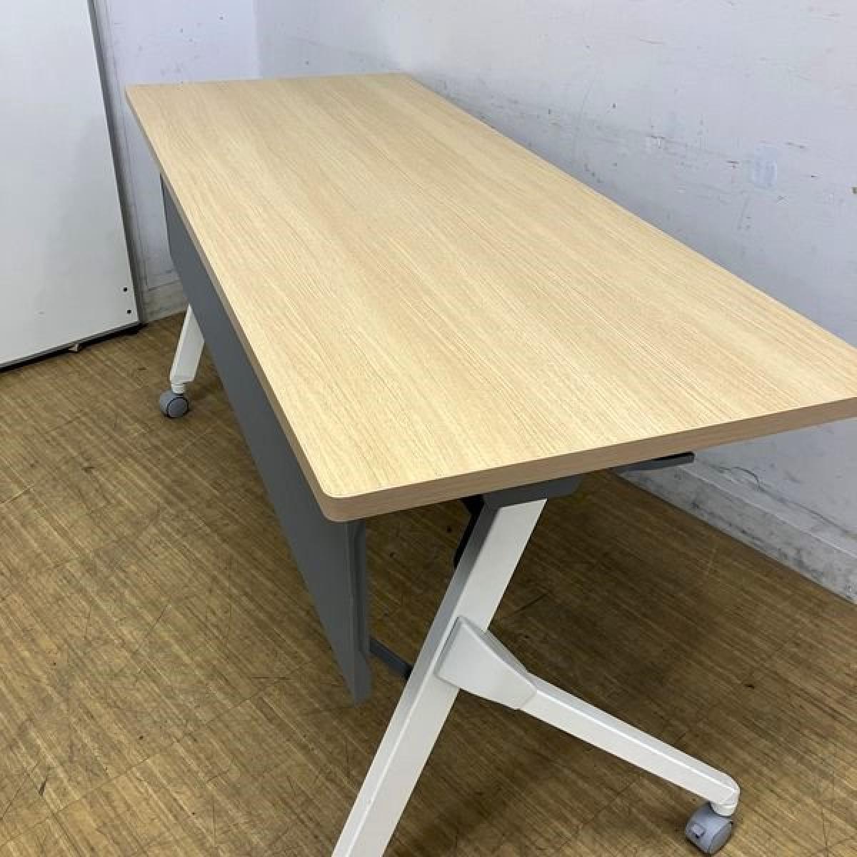 【W1500の折り畳みテーブルが入荷!】◆オカムラ/フラプター ナチュラル 木目 サイドスタックテーブル 収納 中古 博多 天神 九州最大級 オフィスバスターズ在庫がある店舗一覧