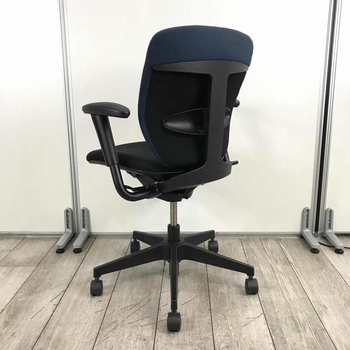 【一人ひとりにマッチする座り心地!姿勢の変化にフレキシブルに対応!】■イトーキ製 プラオ 肘付ローバックチェア ■サークル肘 ■背面ストロングブルーブルー&座面ブラック