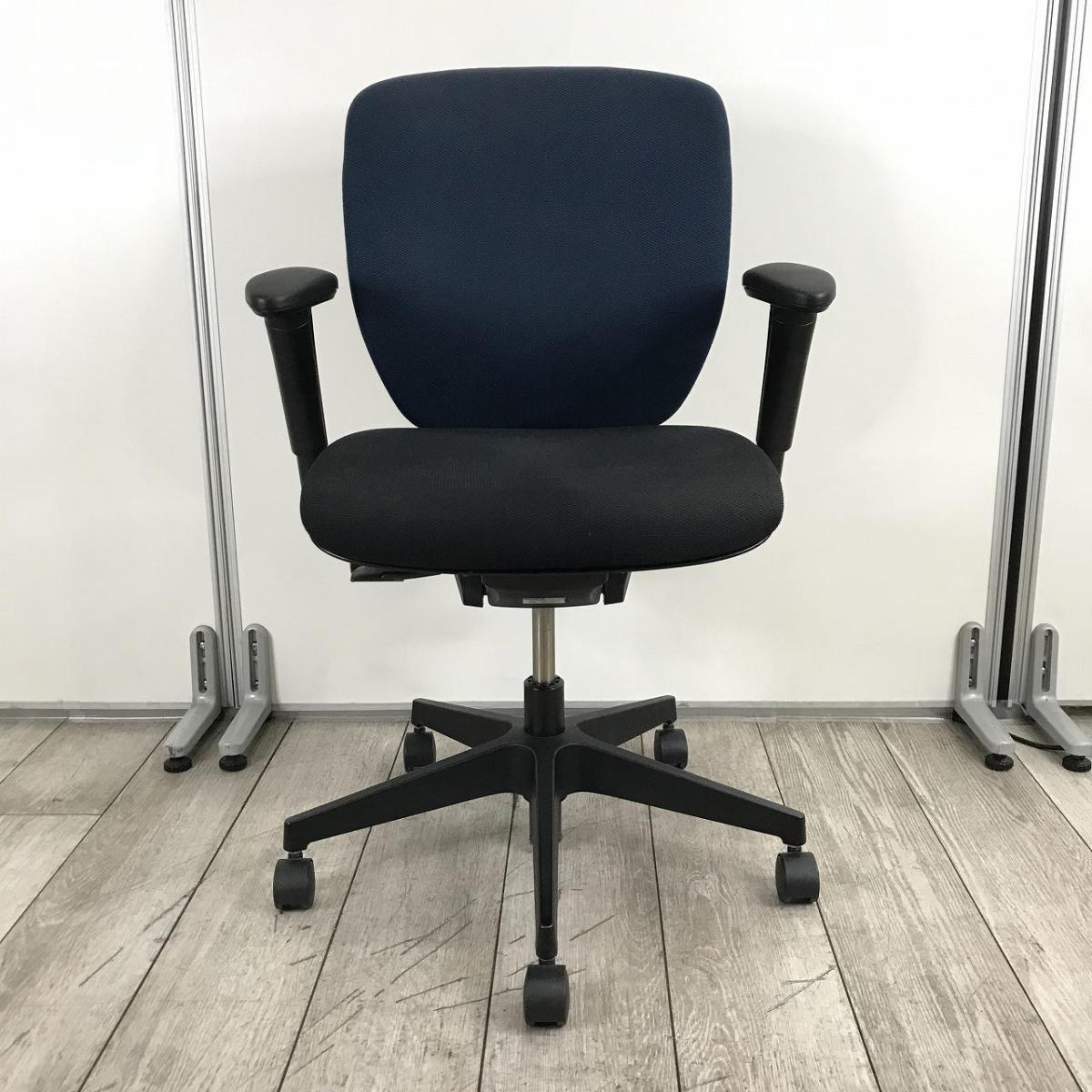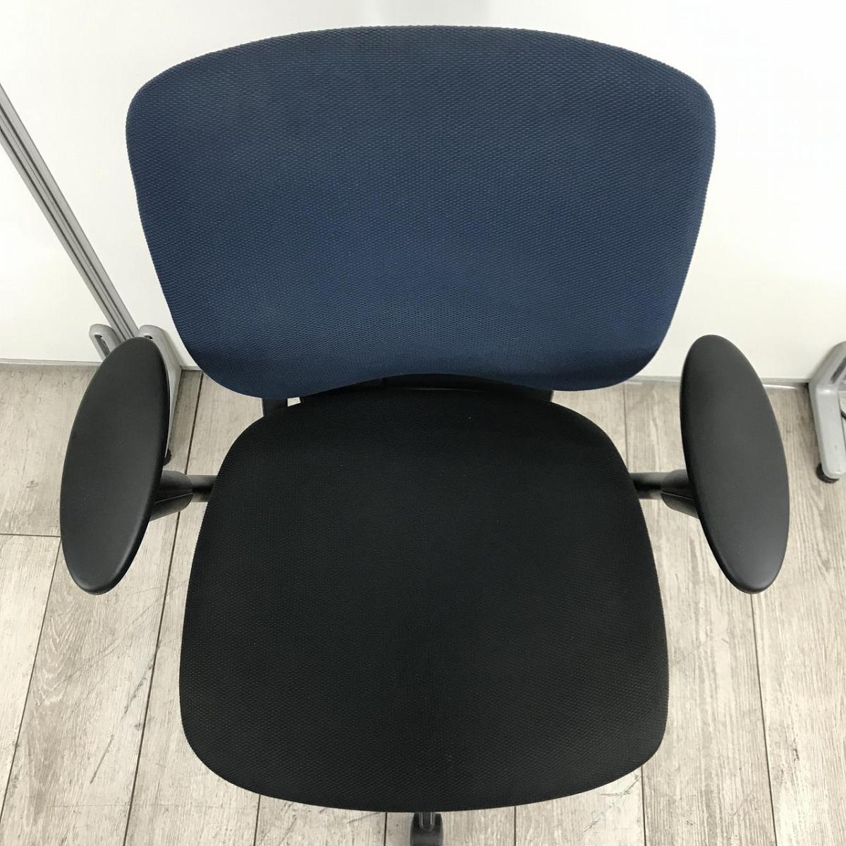 【一人ひとりにマッチする座り心地!姿勢の変化にフレキシブルに対応!】■イトーキ(ITOKI)製 プラオチェア 肘付 ローバック ■サークル肘 ■背面ストロングブルー×座面ブラック オフィスバスターズ 東大阪店【K11】