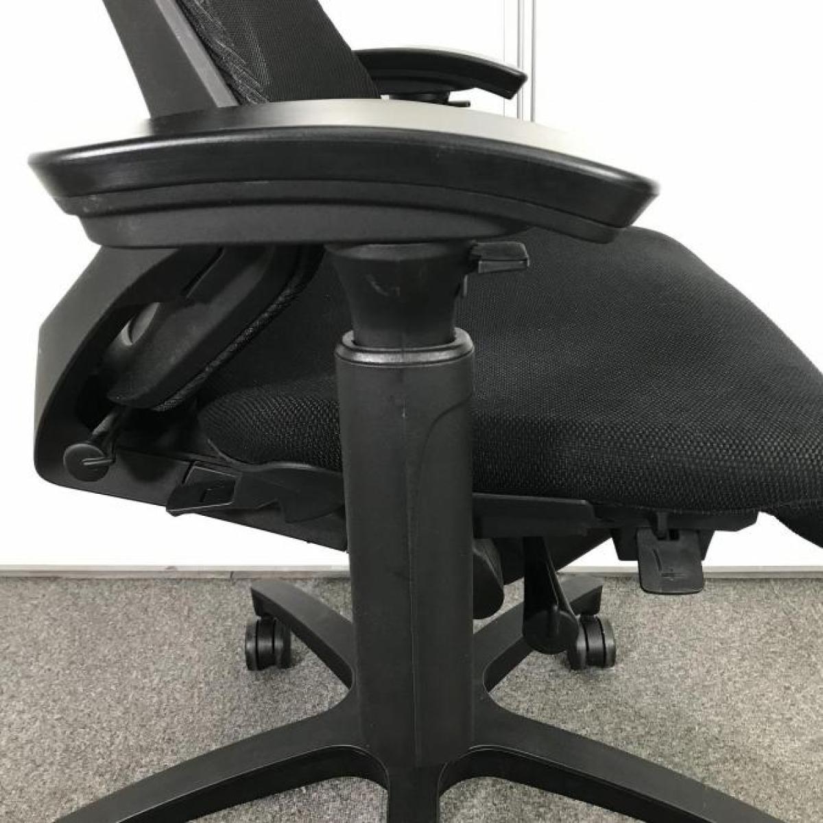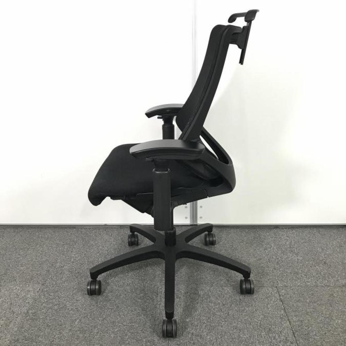 【スタイリッシュなデザインのメッシュチェア!】■イトーキ製 エフチェア 可動肘付 ブラック 背裏:ストライプメッシュ ハンガー付 ■高機能で座り心地も抜群!姿勢の変化にフレキシブルに対応!【肘新型タイプ】- 川崎店