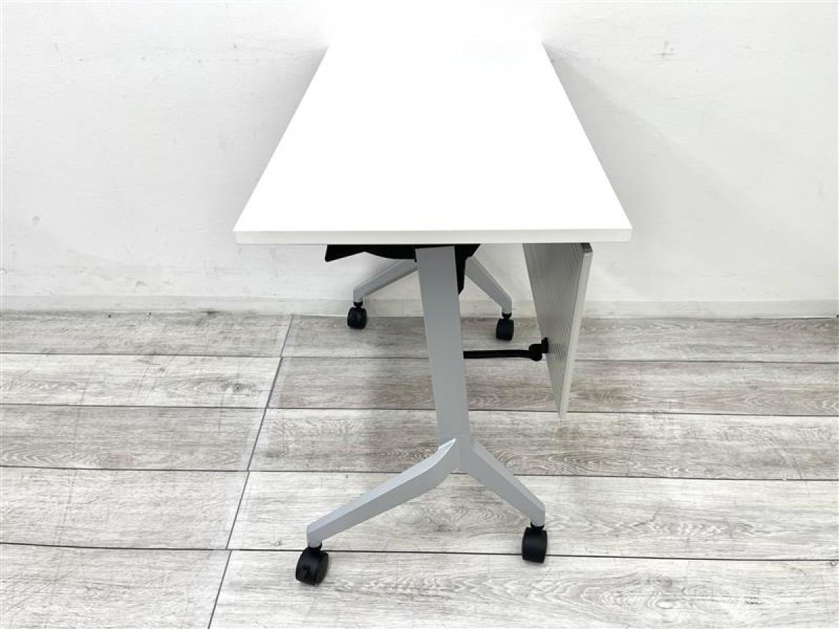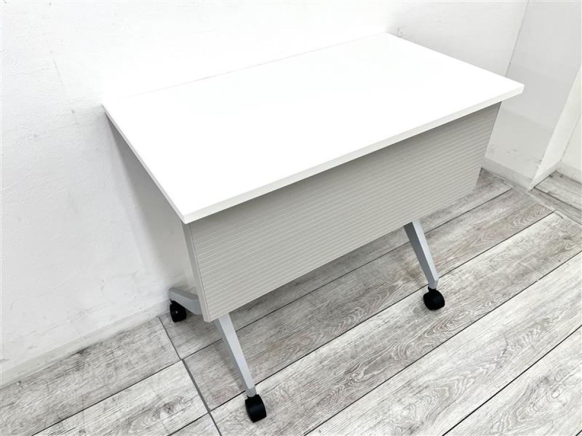 【定価約7万円】コンパクトな幅800㎜サイズのスタッキングテーブル! ■内田洋行/パラグラフ/ホワイト フラップテーブル 天板跳ね上げ 幕板付き